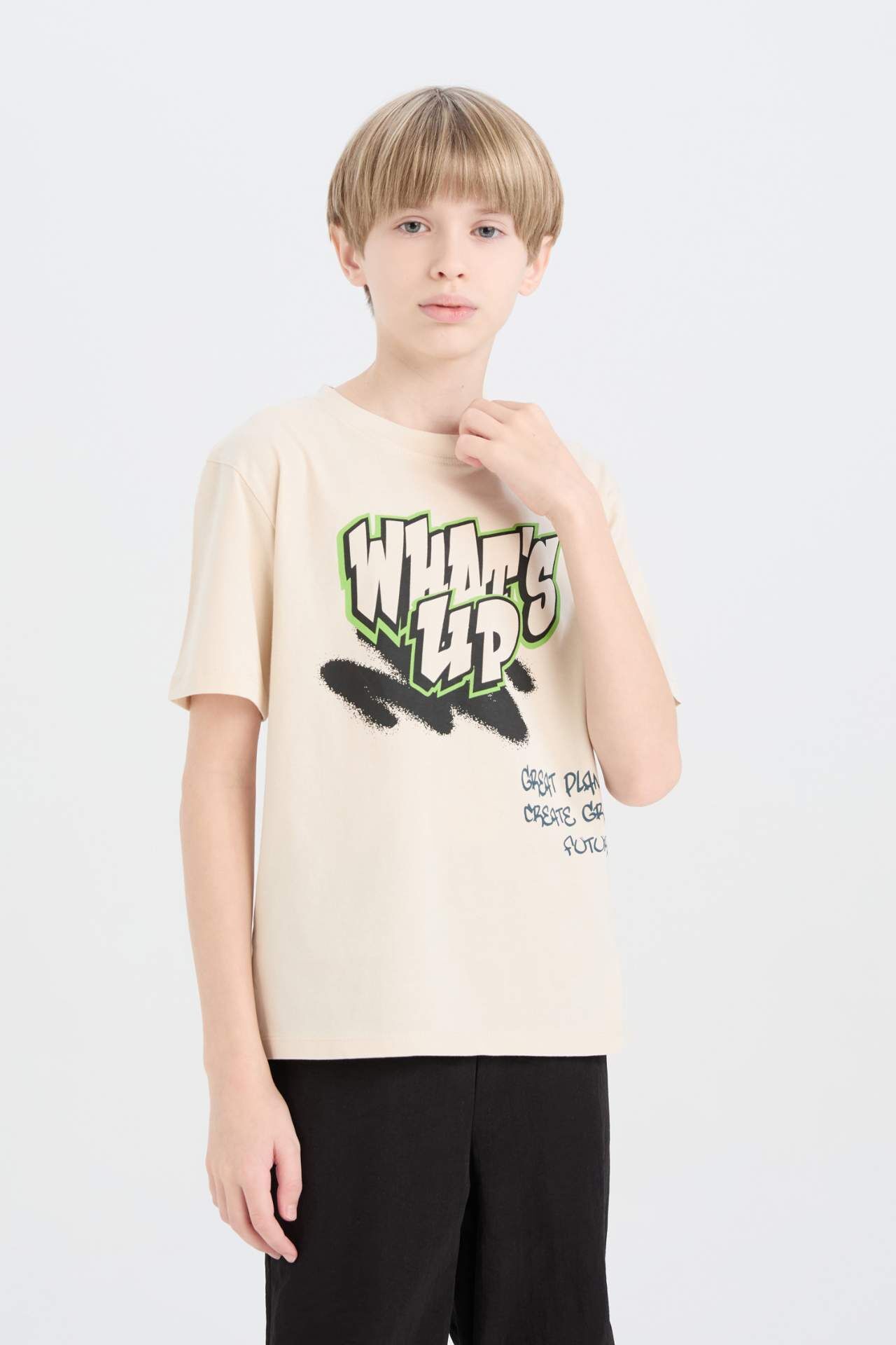 DeFacto Erkek Çocuk Bisiklet Yaka Baskılı Kısa Kollu Tişört D9489A825SMBG74
