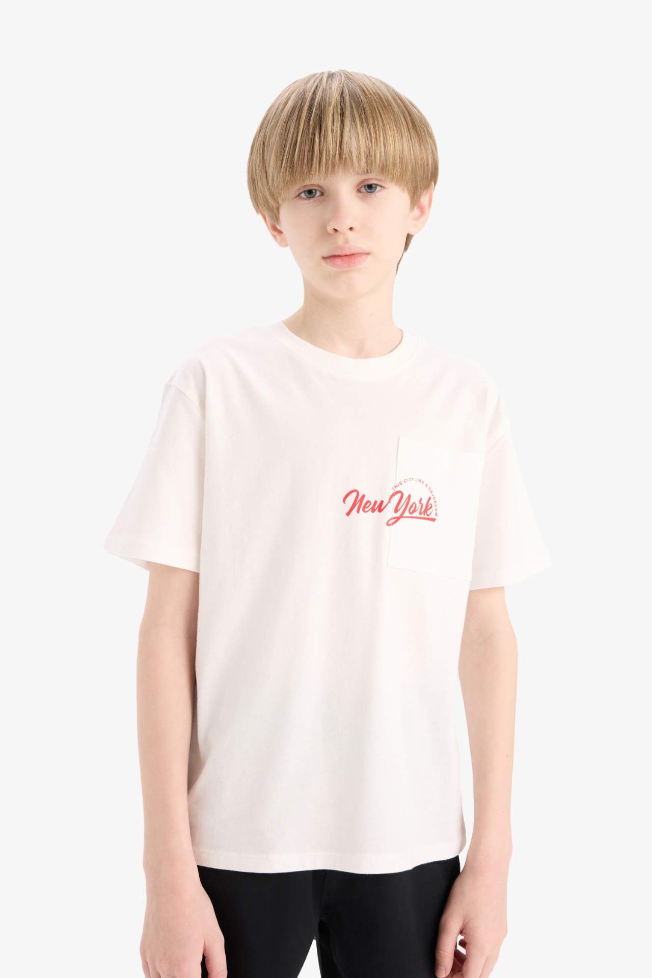 DeFacto Erkek Çocuk Bisiklet Yaka Baskılı Kısa Kollu Tişört E0095A825SMWT32