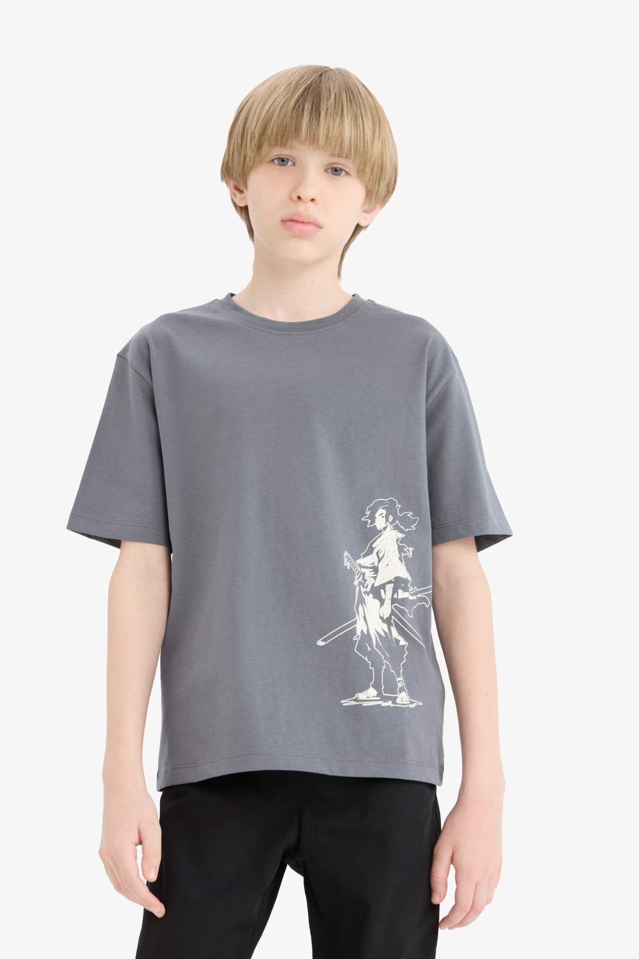 DeFacto Erkek Çocuk Bisiklet Yaka Baskılı Kısa Kollu Tişört E0178A825HSAR58