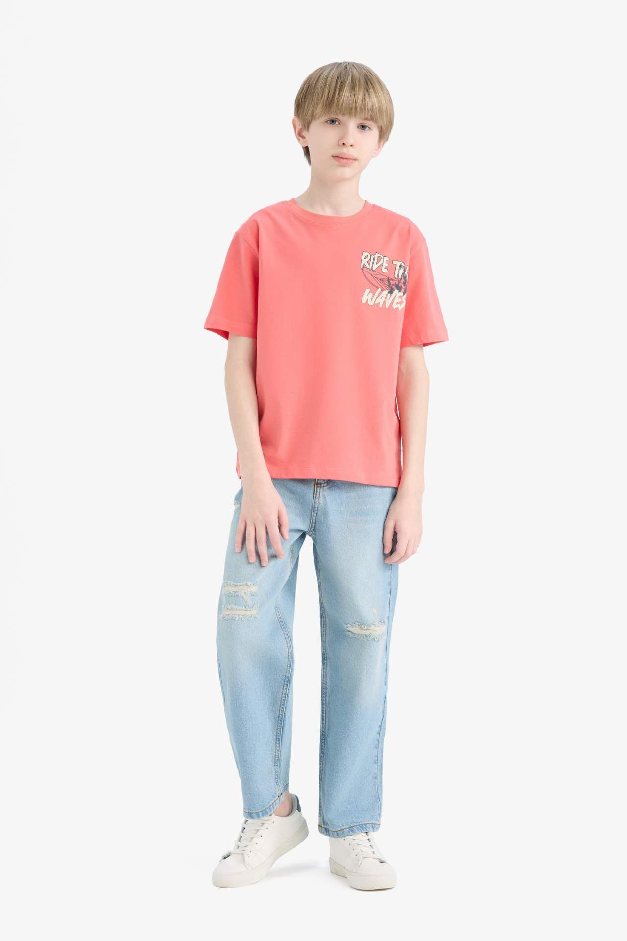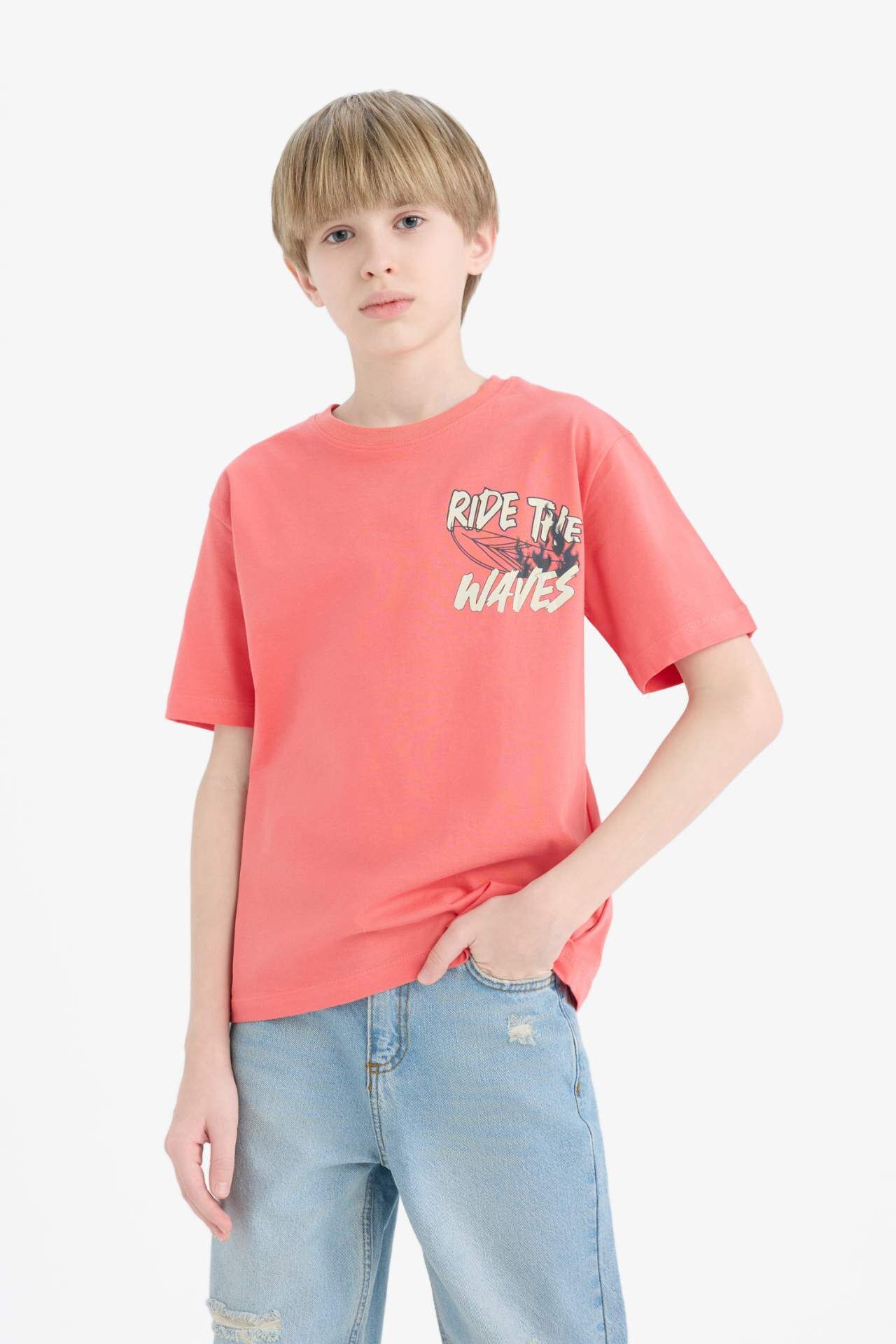 DeFacto Erkek Çocuk Bisiklet Yaka Baskılı Kısa Kollu Tişört E0185A825HSRD188