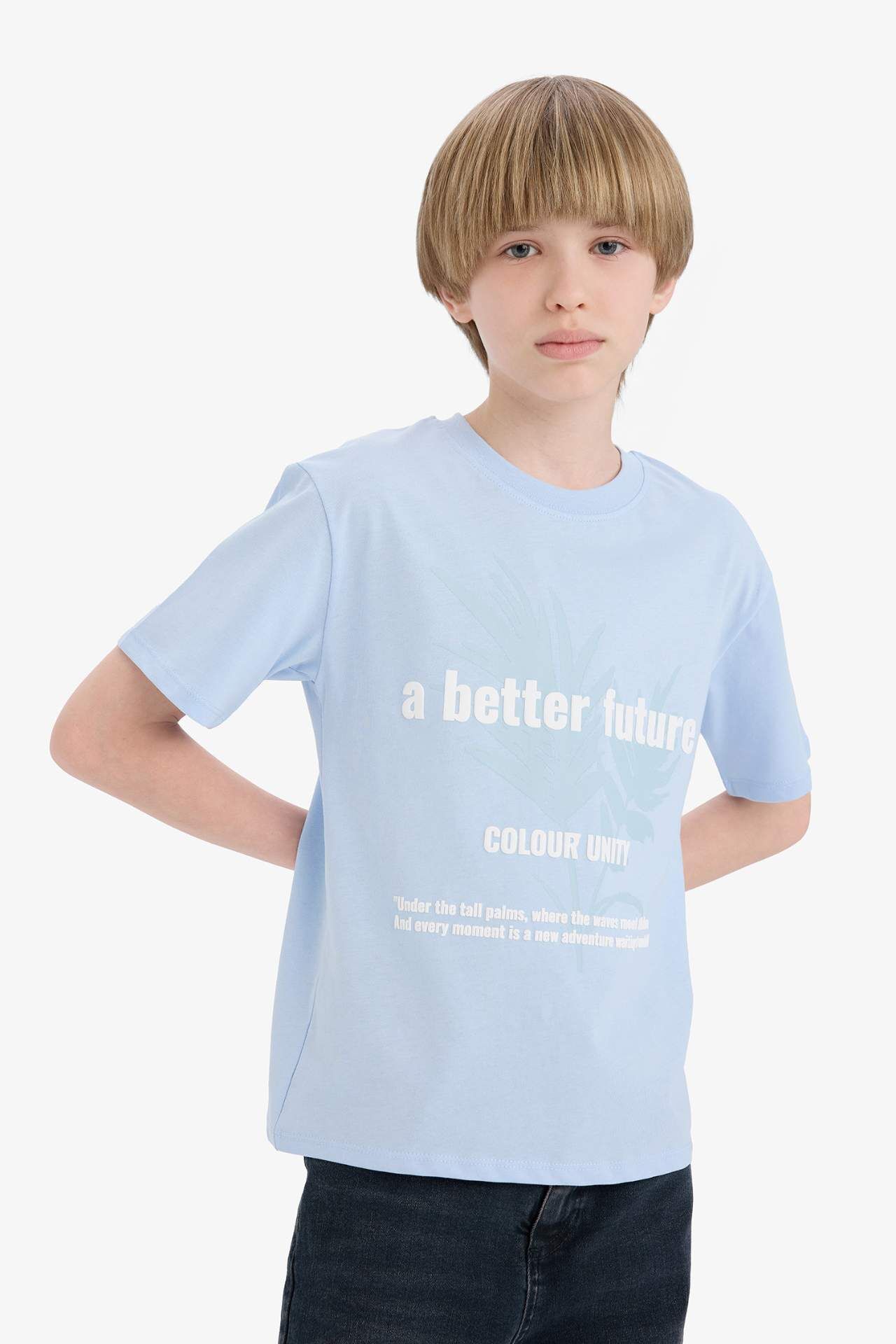 DeFacto Erkek Çocuk Bisiklet Yaka Baskılı Kısa Kollu Tişört E3745A825SMBE745