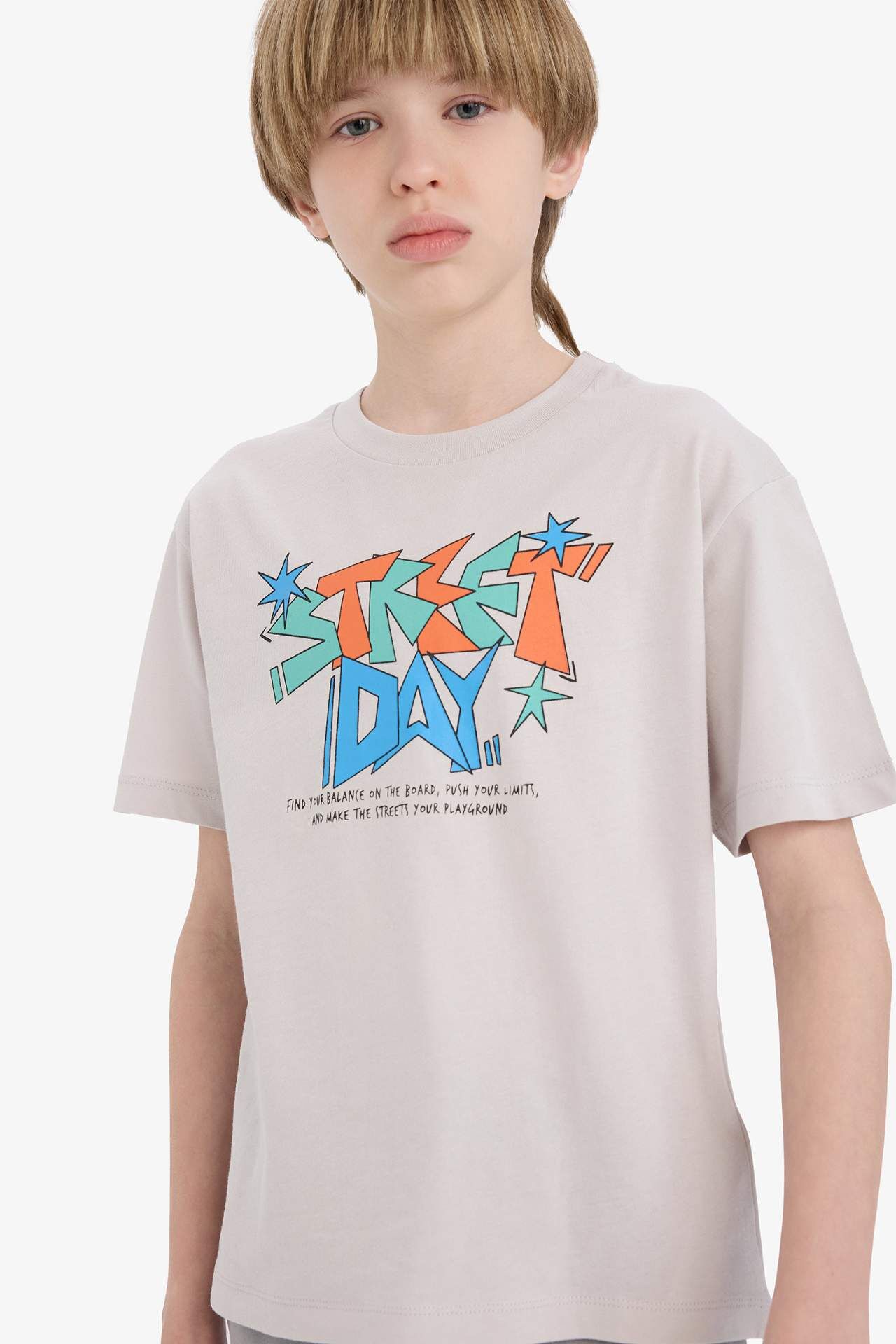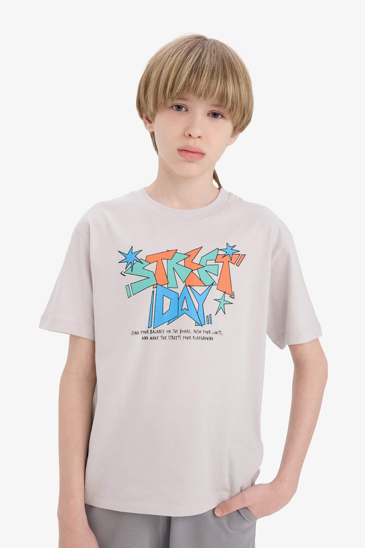DeFacto Erkek Çocuk Bisiklet Yaka Baskılı Kısa Kollu Tişört E6318A825HSGR470