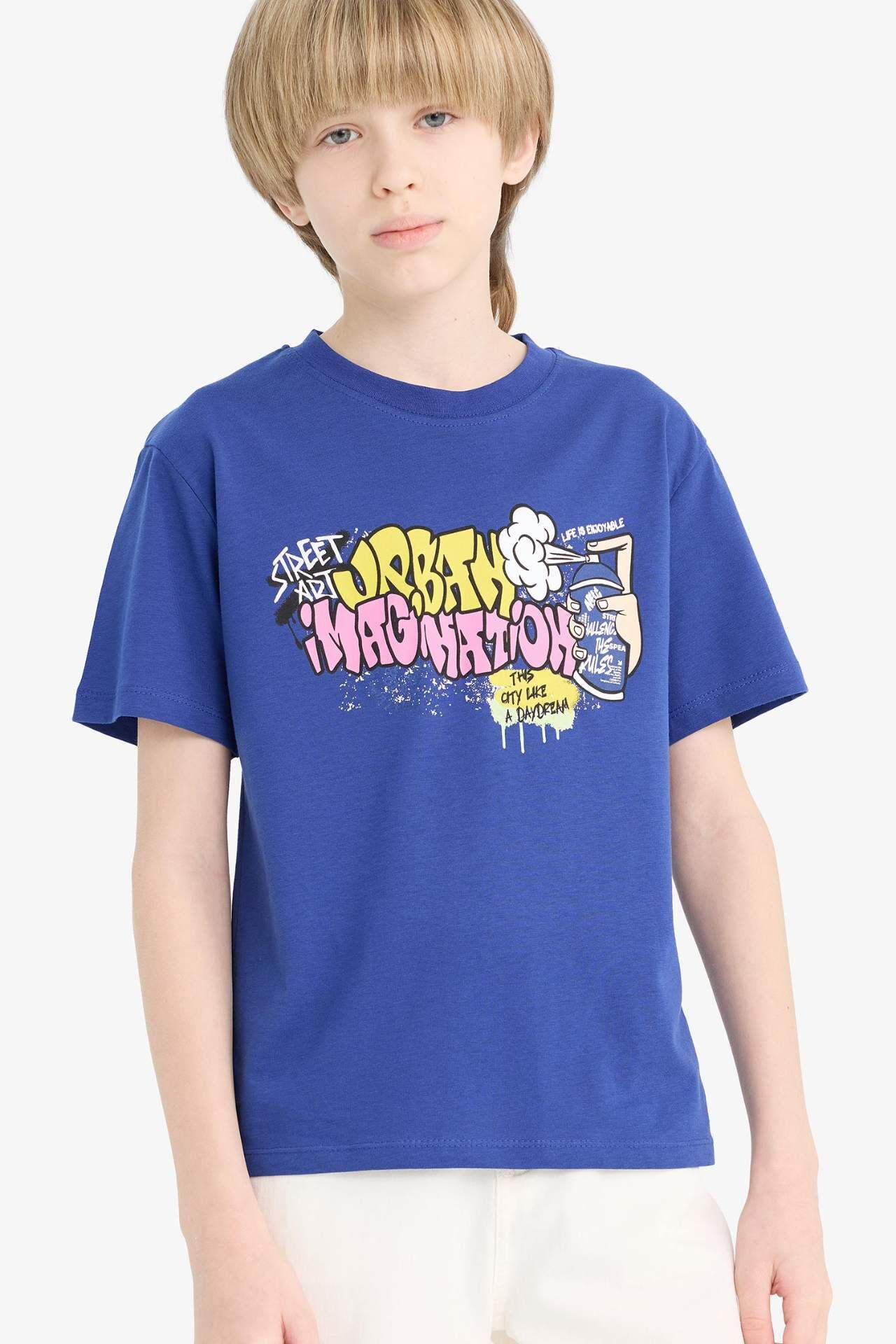 DeFacto Erkek Çocuk Bisiklet Yaka Baskılı Kısa Kollu Tişört E7493A825SMBE778