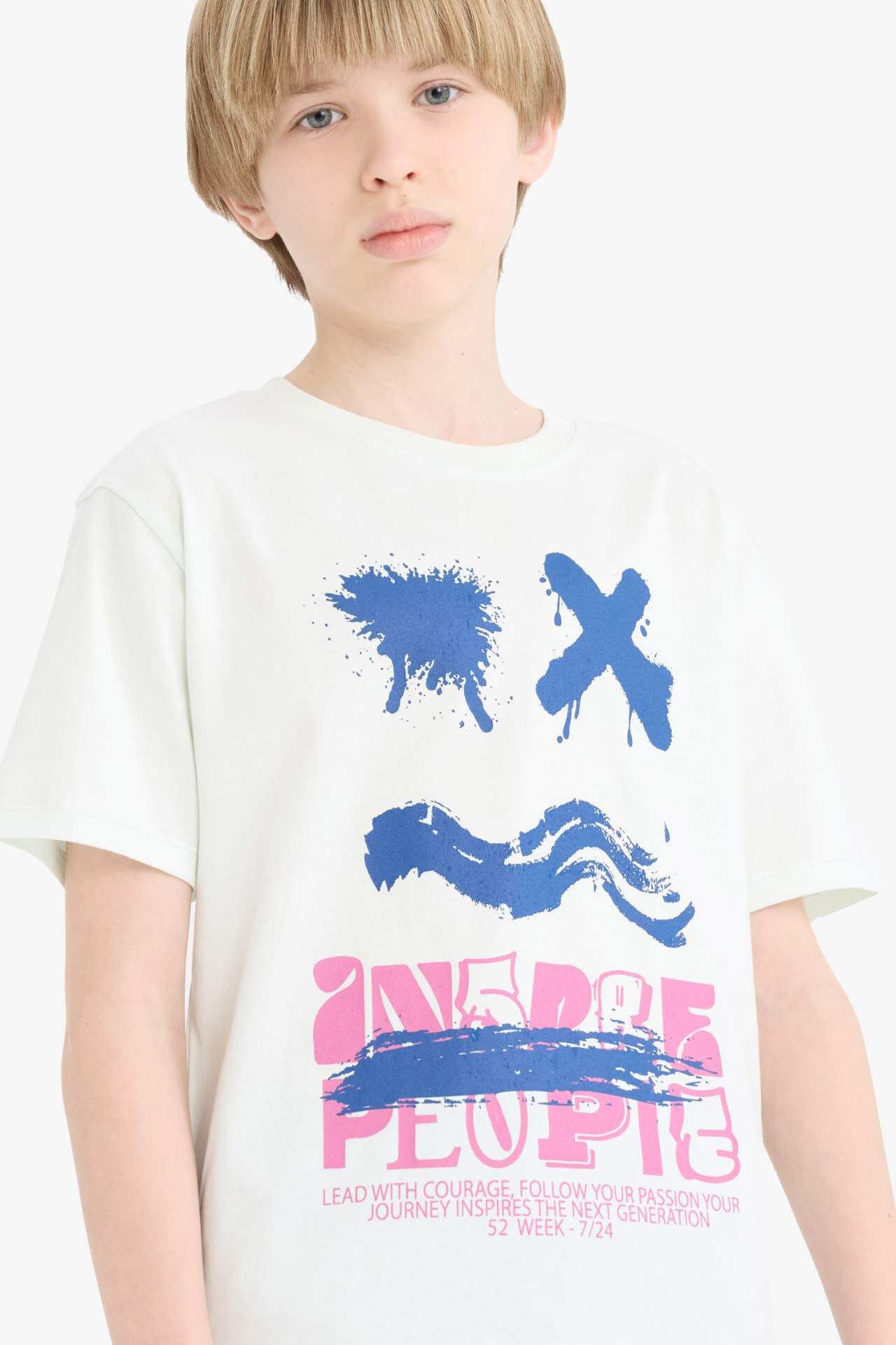 DeFacto Erkek Çocuk Bisiklet Yaka Baskılı Kısa Kollu Tişört E7494A825SMGN1025