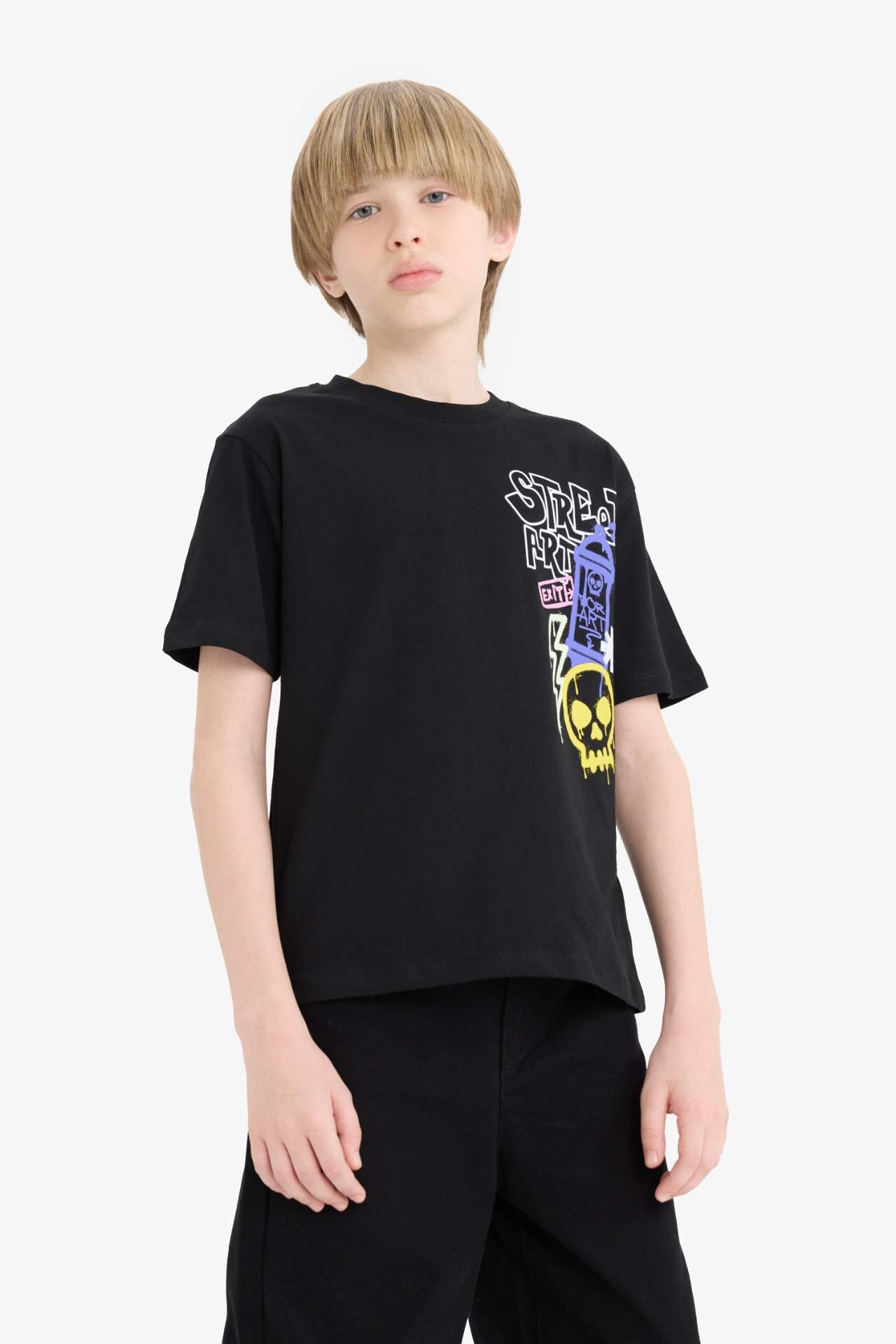 DeFacto Erkek Çocuk Bisiklet Yaka Baskılı Kısa Kollu Tişört E7495A825SMBK81