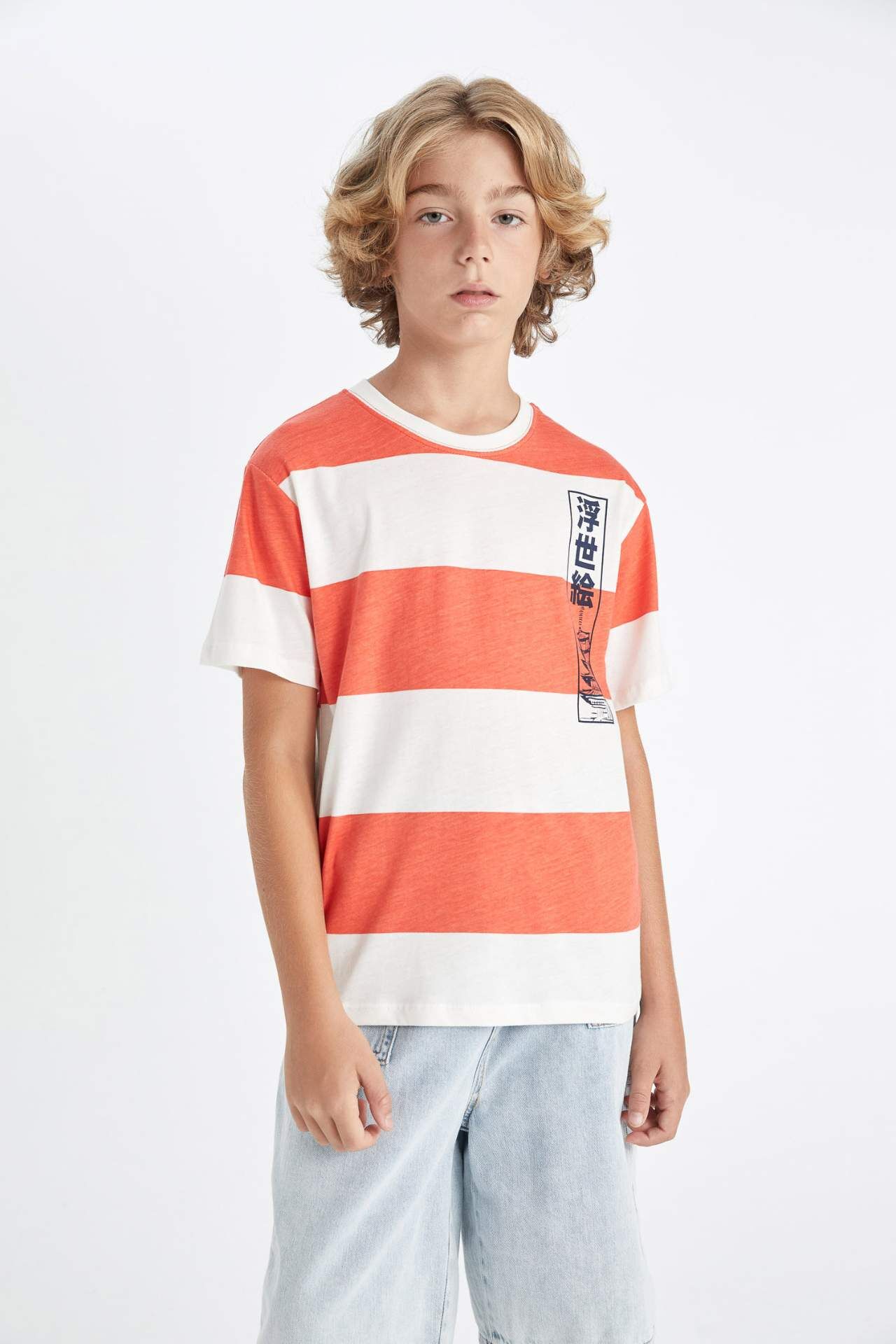 Erkek Çocuk Regular Fit Bisiklet Yaka Çizgili Kısa Kollu Tişört: Şıklığı ve rahatlığı bir arada sunan bu tişört, çocuğunuzun gardırobunun vazgeçilmezi olmaya aday. Kaliteli kumaşı ve şık çizgili tasarımıyla her tarza uyum sağlar. Günlük kullanıma uygun olan bu tişört, hareket özgürlüğü sunarak çocuğunuzun rahat etmesini sağlar. Pamuk 100%,Pamuk 100% Manken Bedeni: Göğüs: 0 Boy: 1,37 Basen: 0 Bel: 0