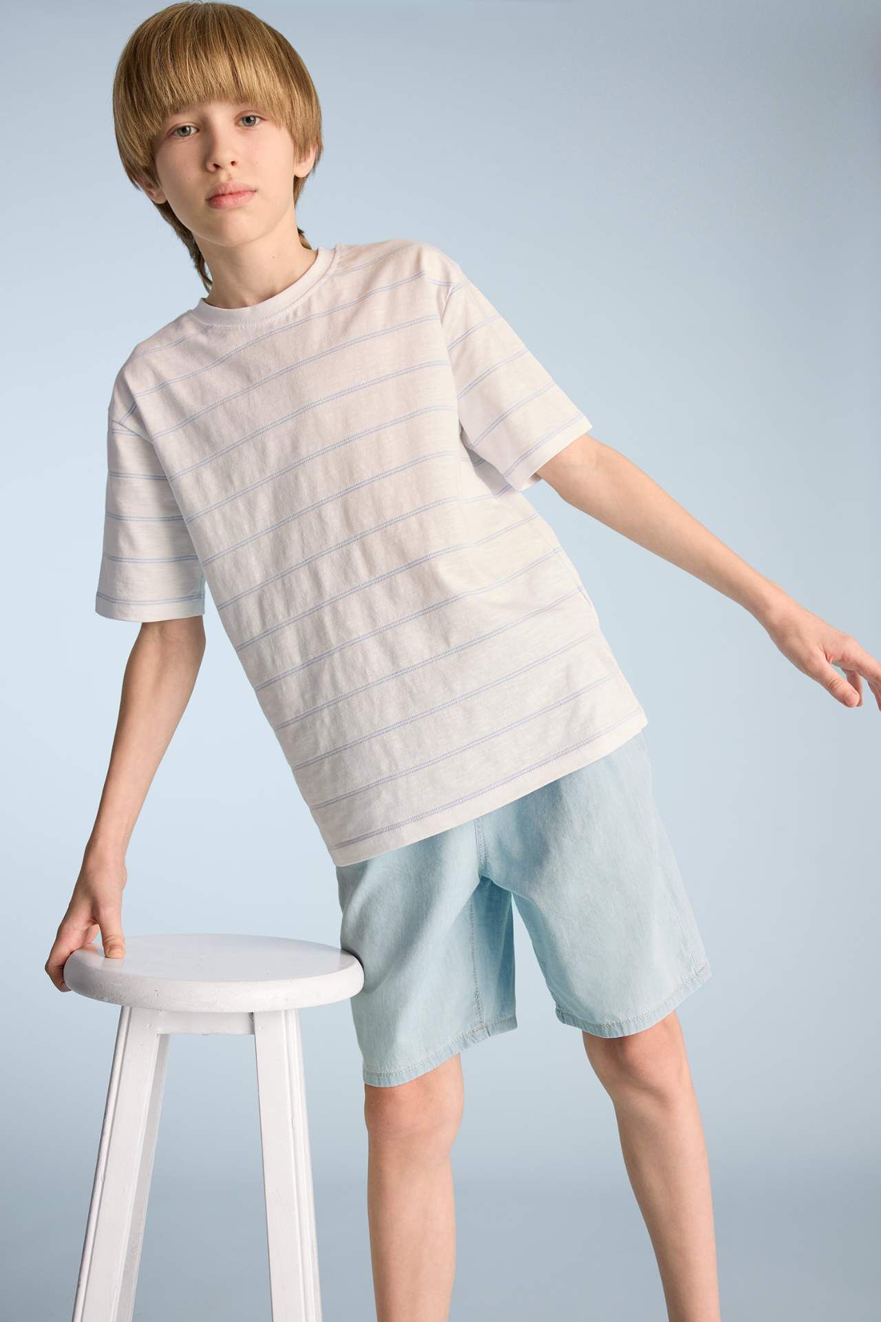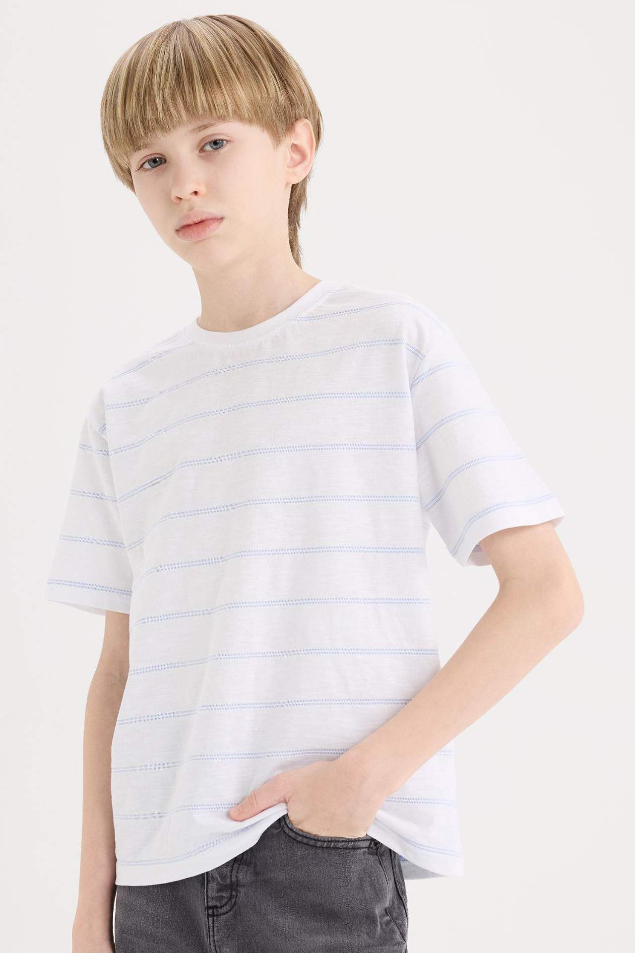 DeFacto Erkek Çocuk Bisiklet Yaka Çizgili Kısa Kollu Tişört E3744A825SMWT36