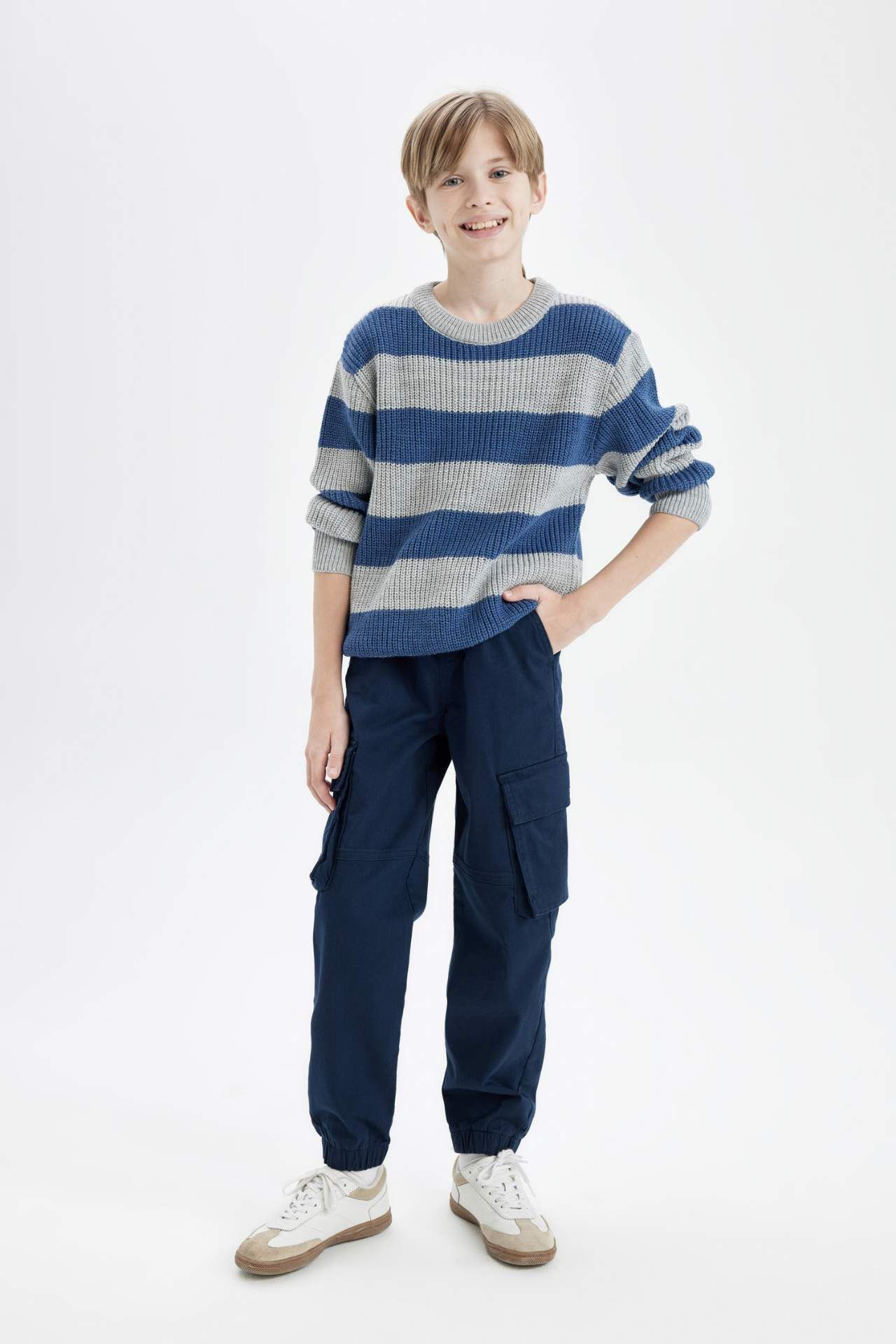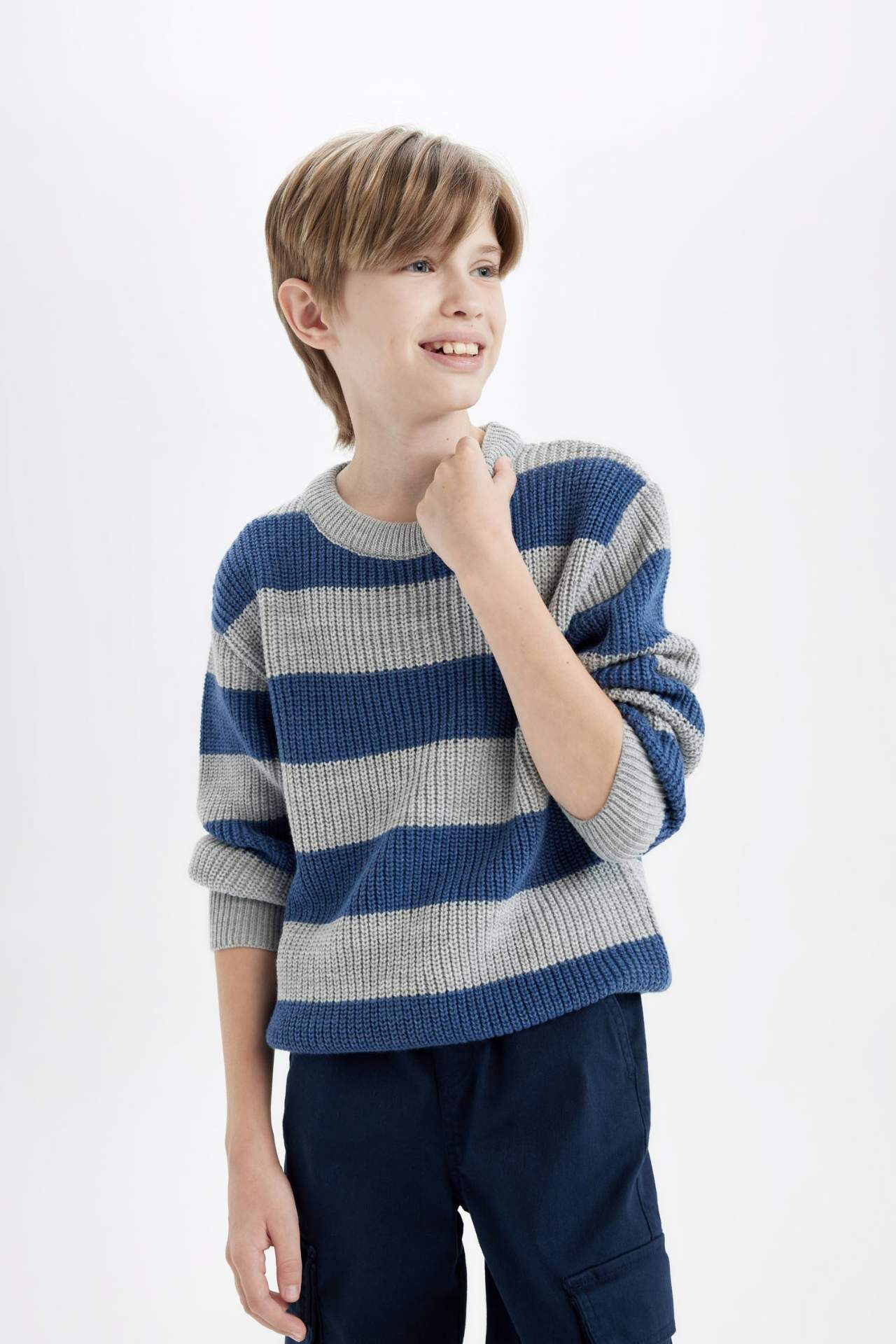 DeFacto Erkek Çocuk Bisiklet Yaka Çizgili Triko Kazak C8112A824CWGR228