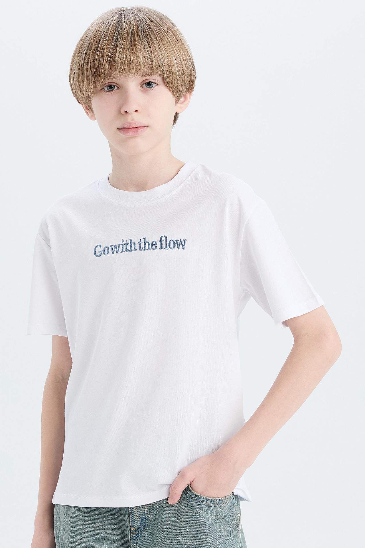 DeFacto Erkek Çocuk Bisiklet Yaka Nakışlı Kısa Kollu Tişört D9292A825SMWT34