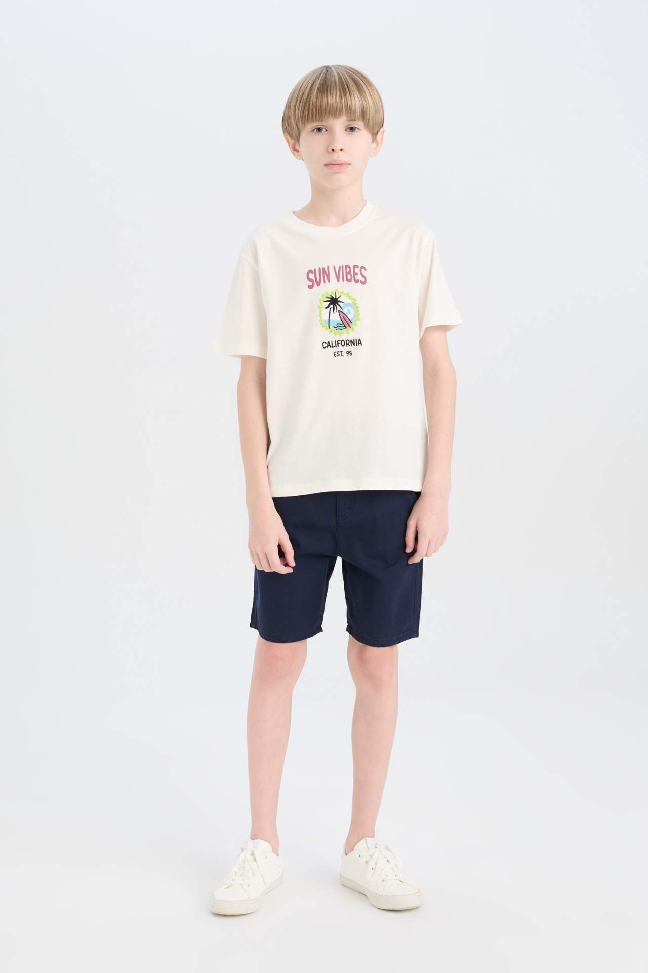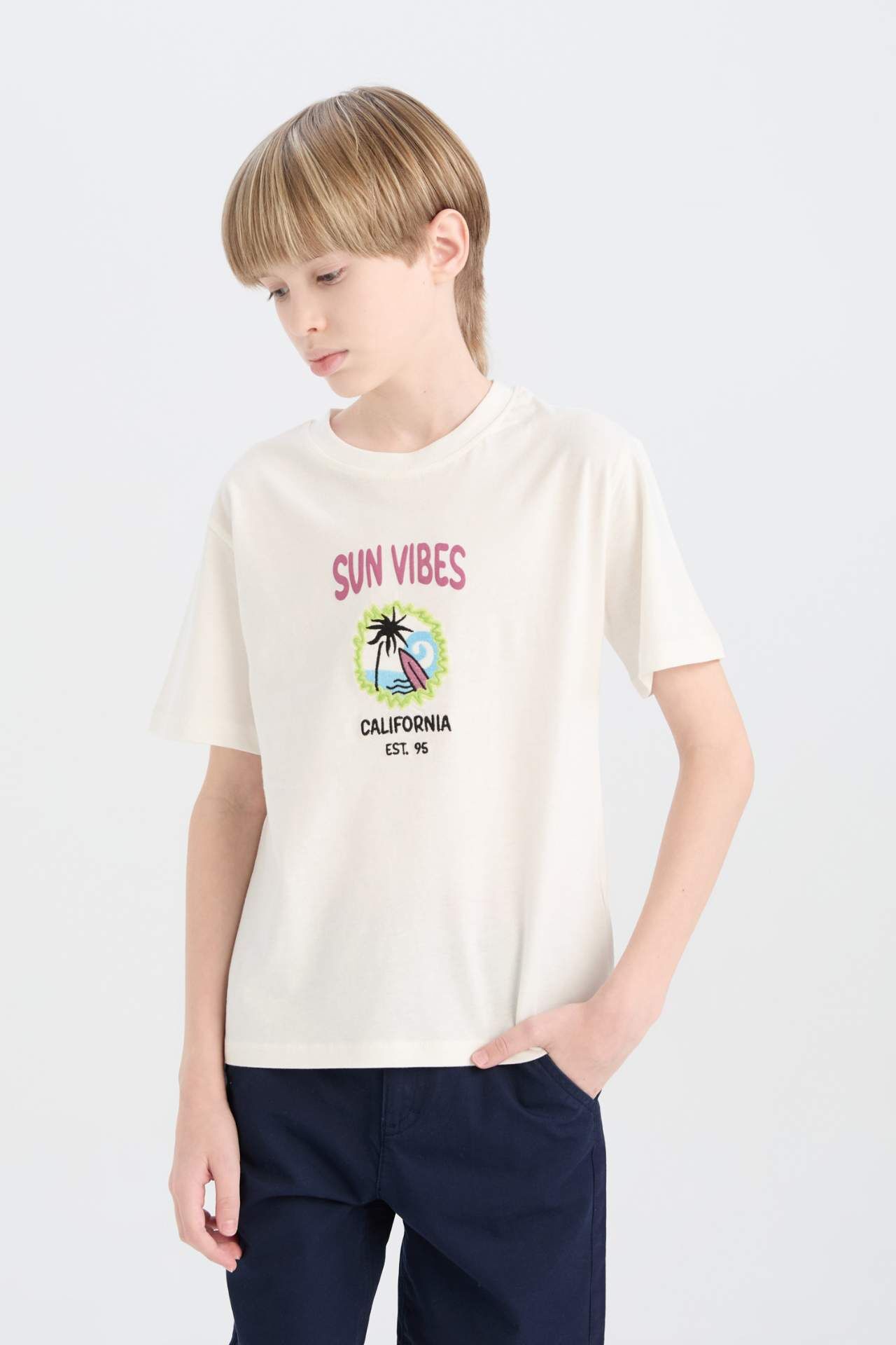 DeFacto Erkek Çocuk Bisiklet Yaka Sırt Baskılı Kısa Kollu Tişört E0969A825SMWT32