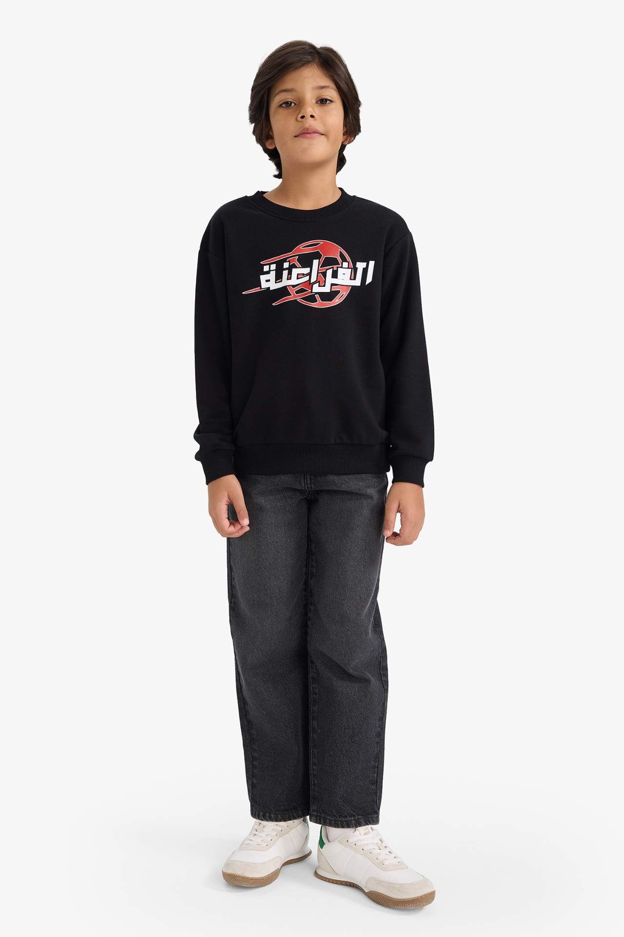 Erkek Çocuk Bisiklet Yaka Slogan Baskılı Sweatshirt