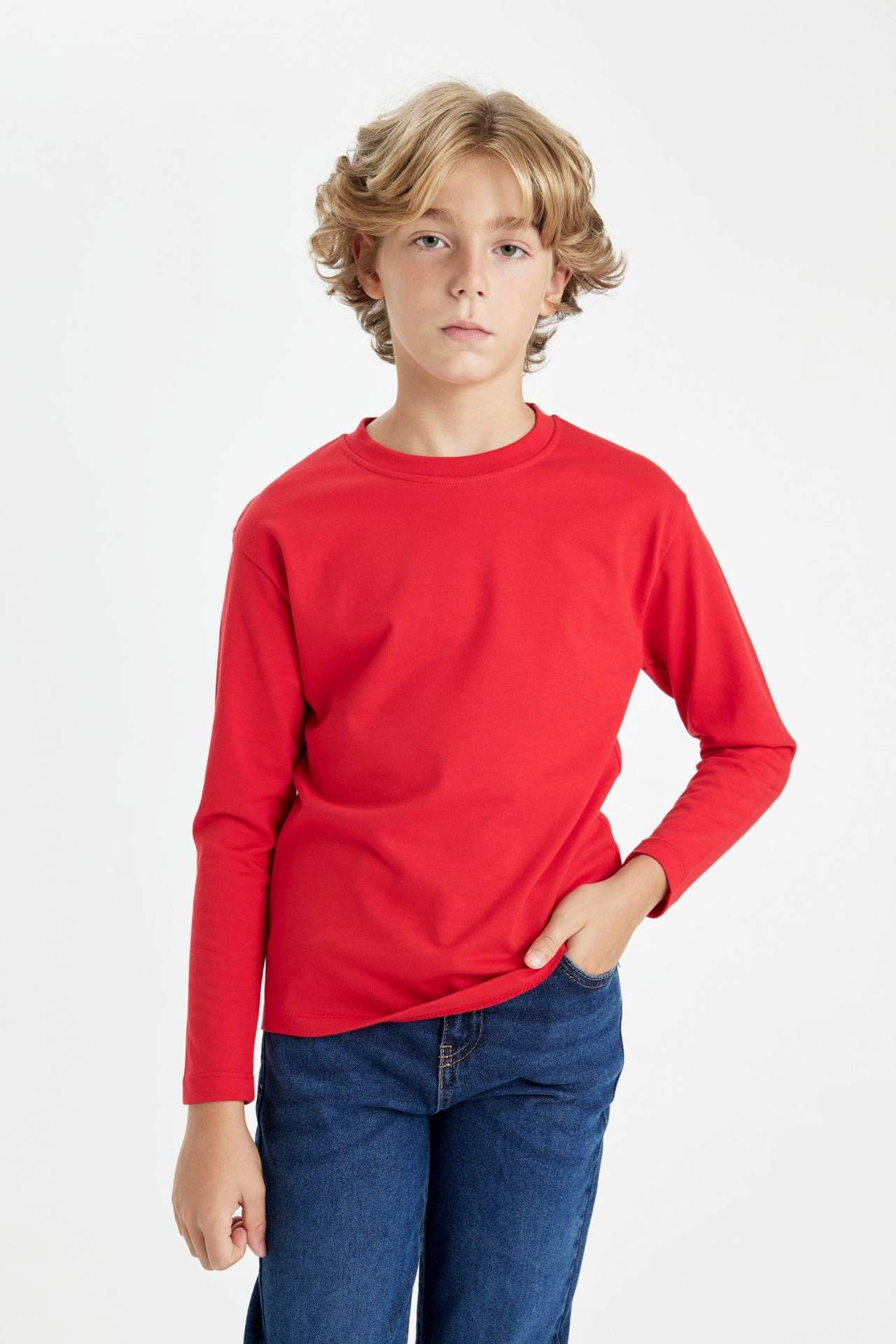 Erkek Çocuk Regular Fit Bisiklet Yaka Uzun Kollu Tişört: Şıklığı ve rahatlığı bir arada sunan bu tişört, küçük beylerin favorisi olmaya aday. Regular fit kesimi ve uzun kollu tasarımıyla her mevsim kullanım için idealdir. Bisiklet yaka detayıyla tarzını konuşturacak olan çocuklar, gün boyu özgürce hareket edebilecekleri bir parça bulacaklar. Pamuk 100%