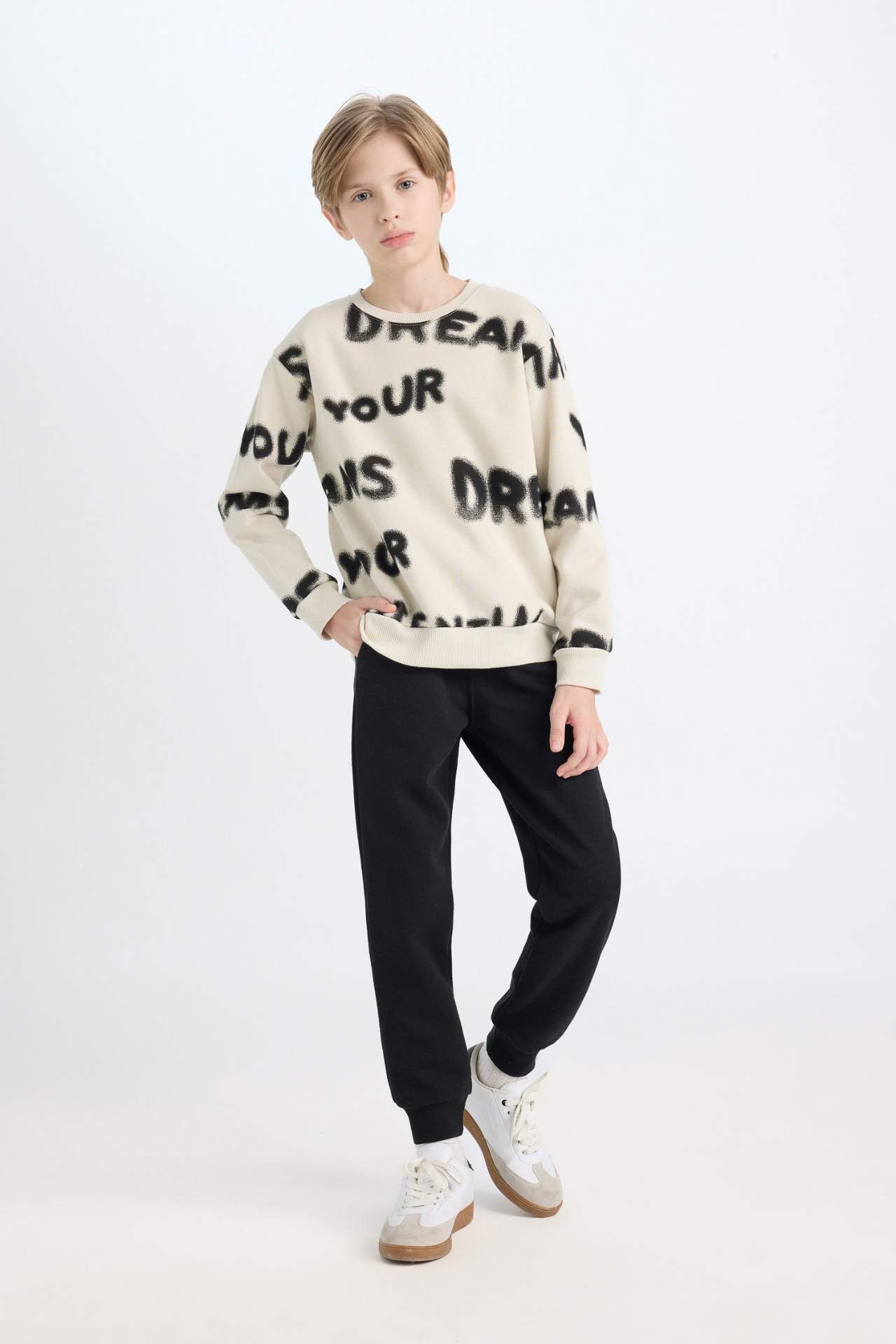 DeFacto Erkek Çocuk Desenli Bisiklet Yaka Kalın Sweatshirt Beli Lastikli Jogger Eşofman Altı 2'li Takım