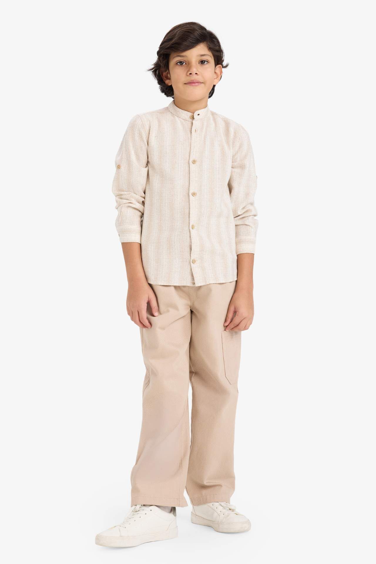 Erkek Çocuk Dik Yaka Çizgili Uzun Kollu Gömlek