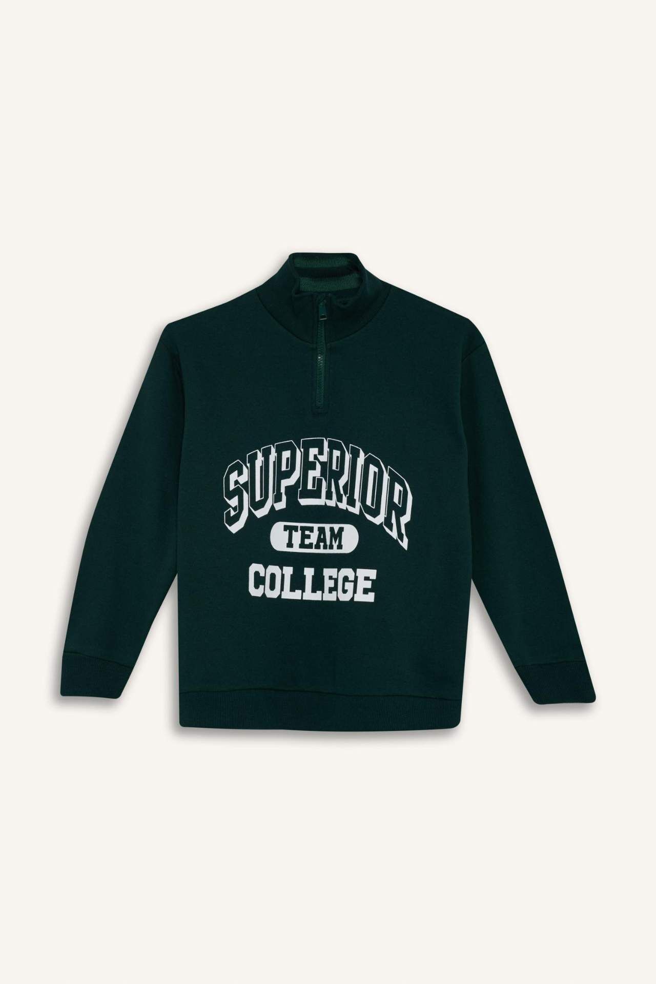 DeFacto Erkek Çocuk Dik Yaka Fermuarlı Baskılı Okul Sweatshirt