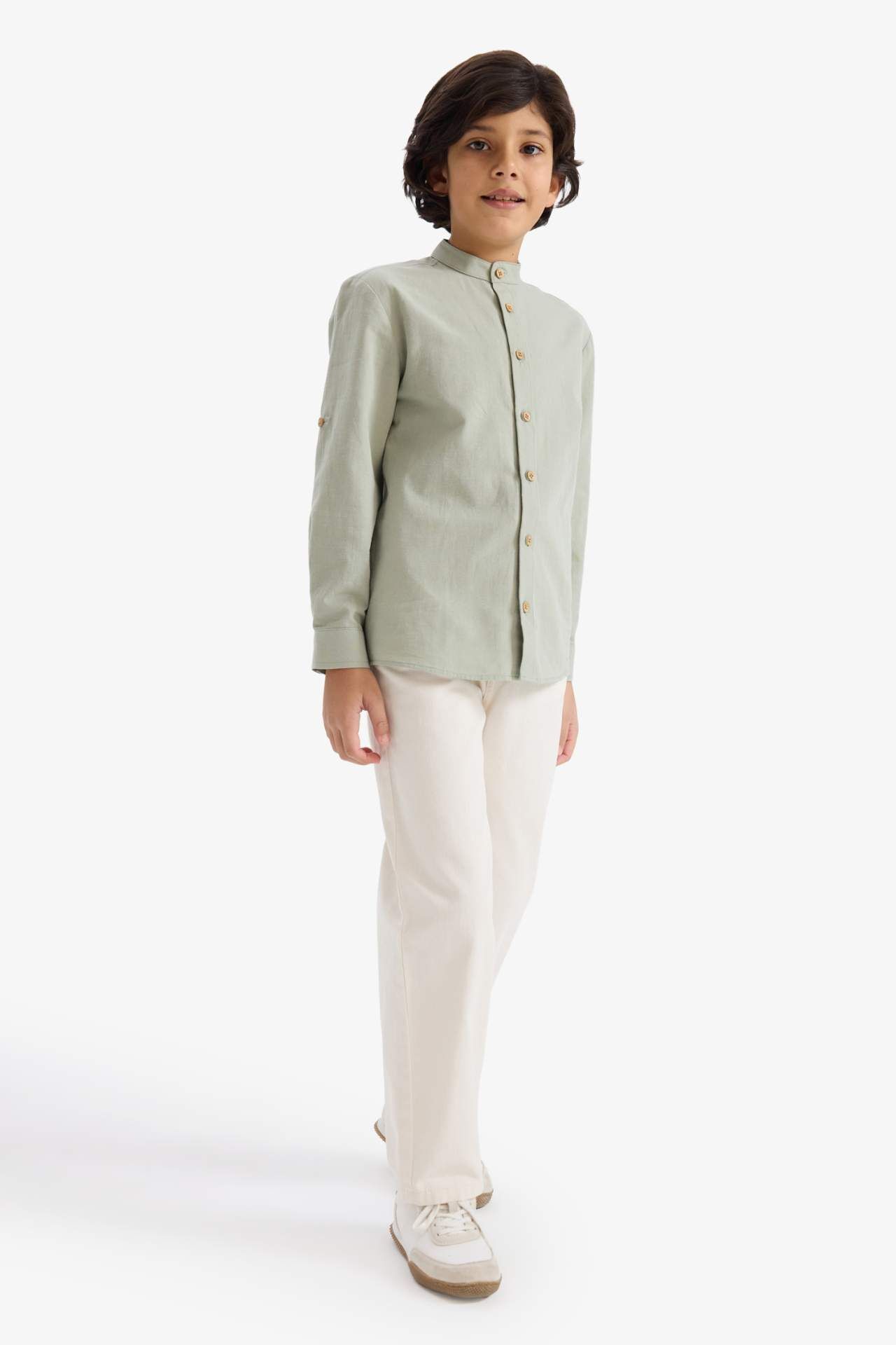 Erkek Çocuk Dik Yaka Uzun Kollu Gömlek, şık ve modern tasarımıyla hem günlük hem özel günler için uygundur. Rahat kesimi ve yumuşak dokusuyla gün boyu konfor sağlar. Pamuk 90%,Keten 10% Manken Bedeni: Göğüs: 0 Boy: 1,37 Basen: 0 Bel: 0