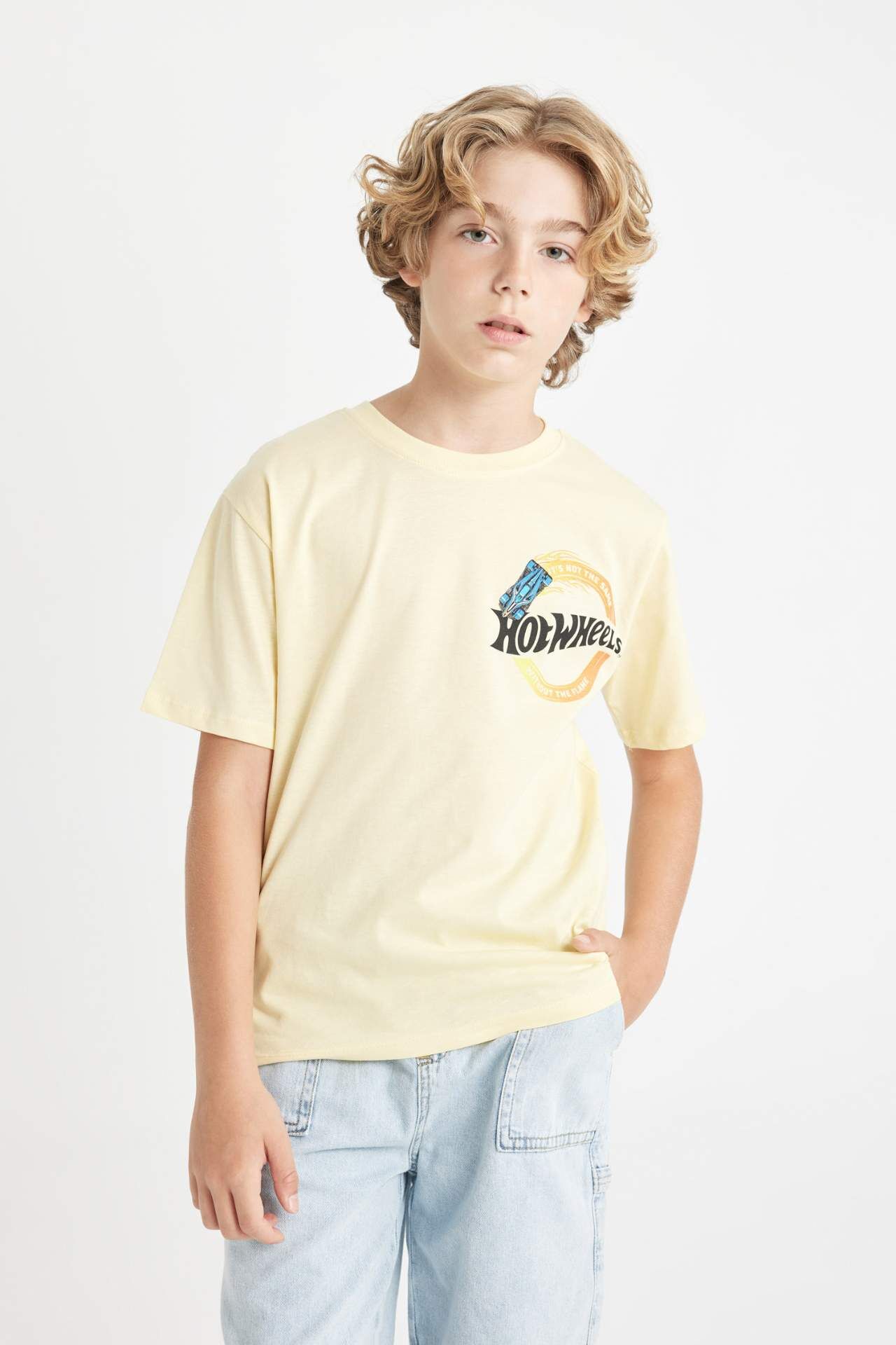 DeFactoFit Erkek Çocuk Hot Wheels Bisiklet Yaka Sırt Baskılı Kısa Kollu Tişört