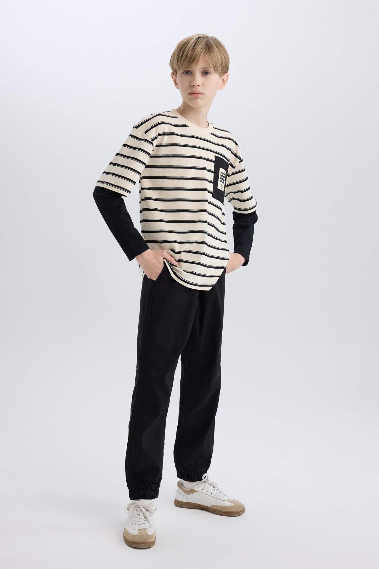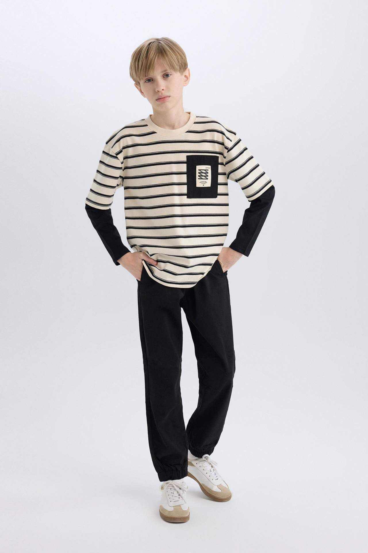 DeFacto Erkek Çocuk Jogger Jogger Paça Gabardin Pantolon B6713A825SMBK81