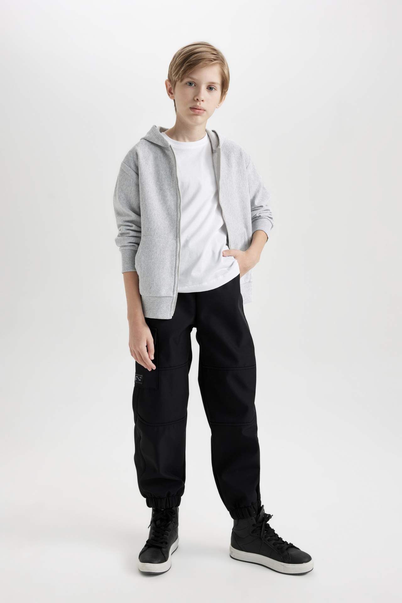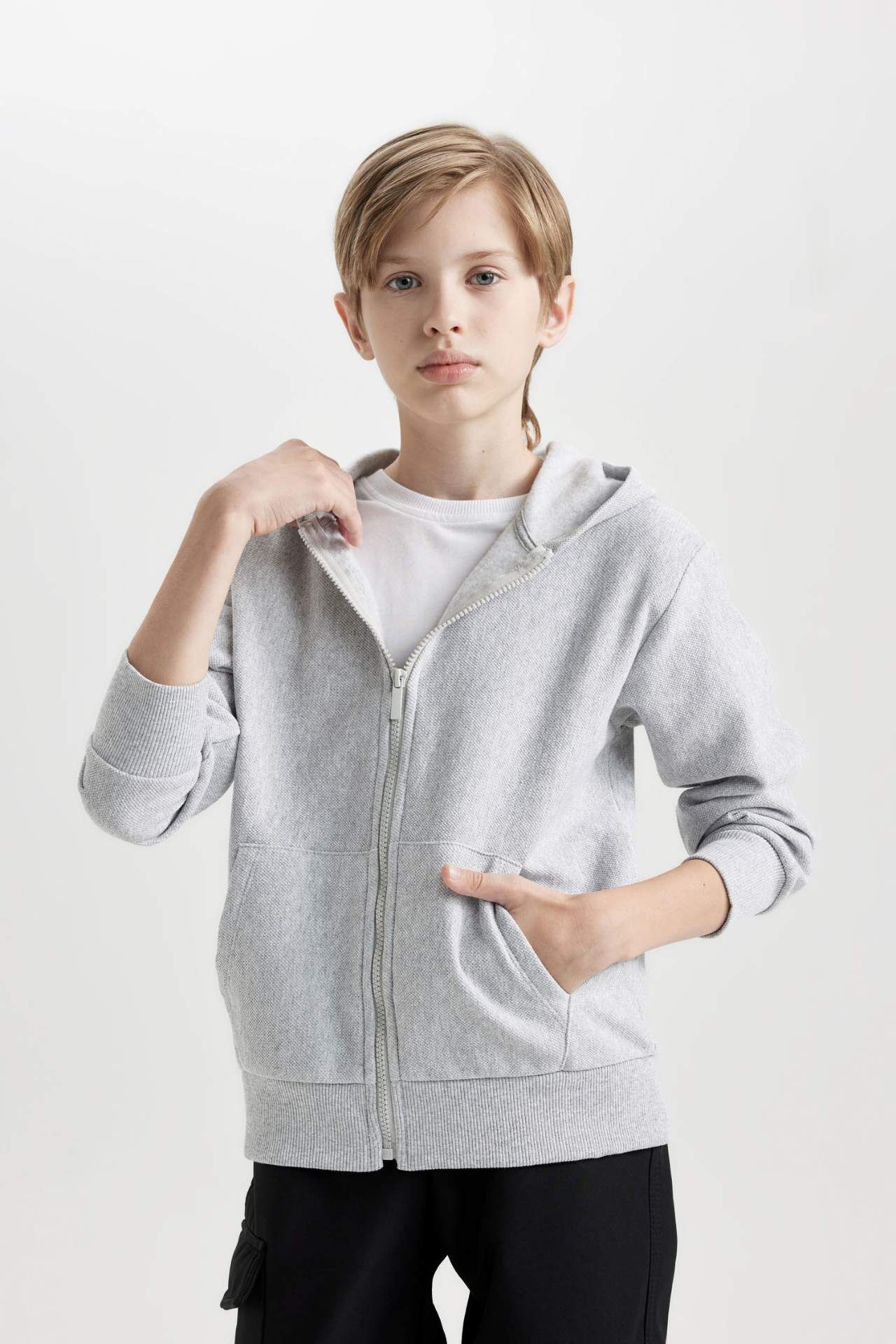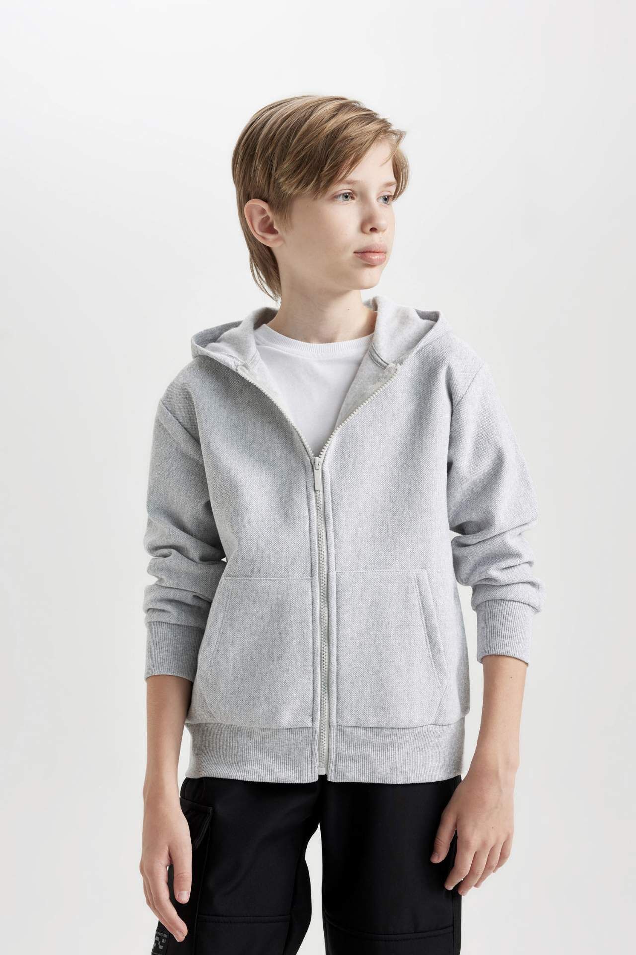 DeFacto DeFactoFit Erkek Çocuk Kapüşonlu Fermuarlı Gri Okul Hırkası