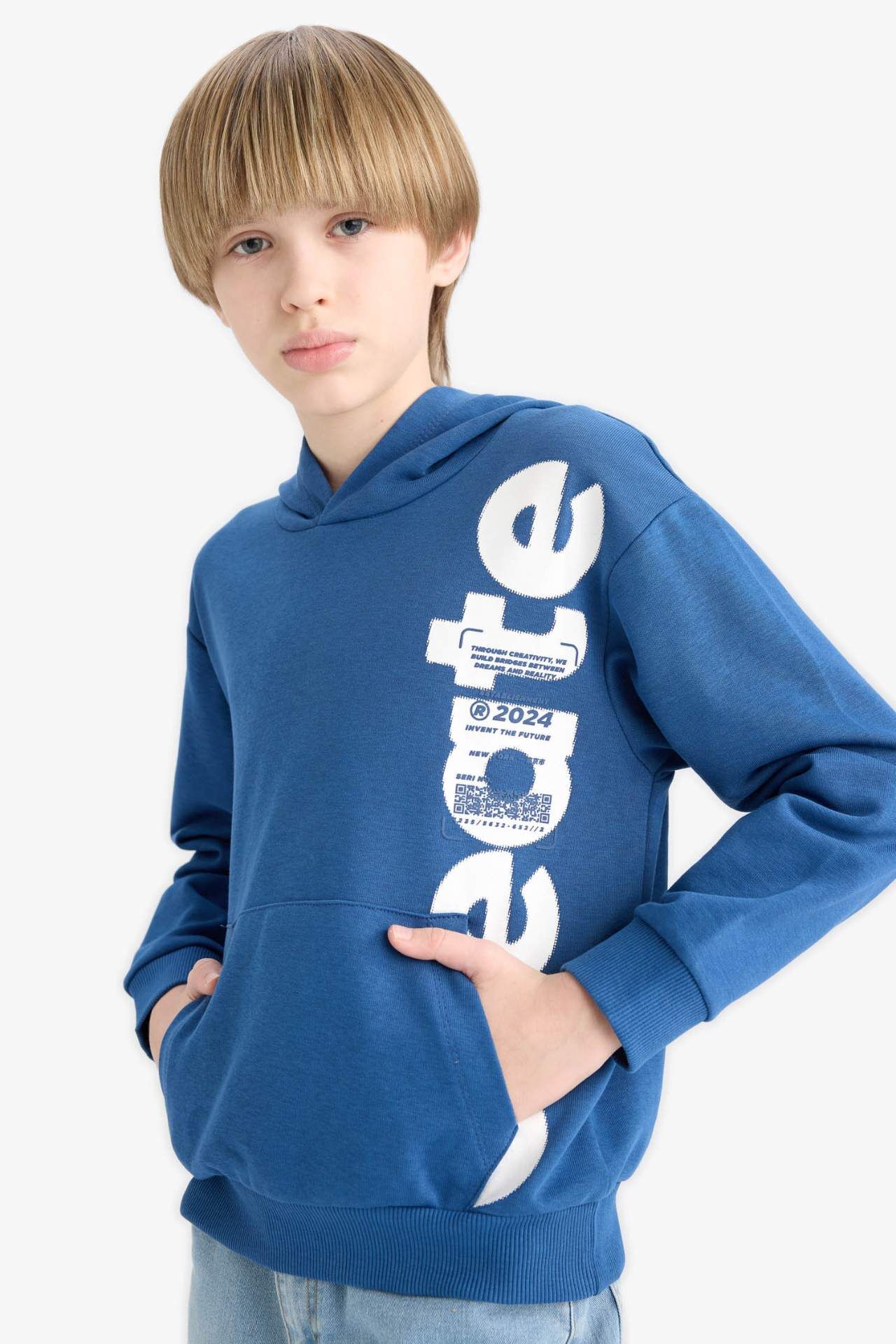 DeFacto Erkek Çocuk Kapüşonlu Kanguru Cepli Baskılı Sweatshirt
