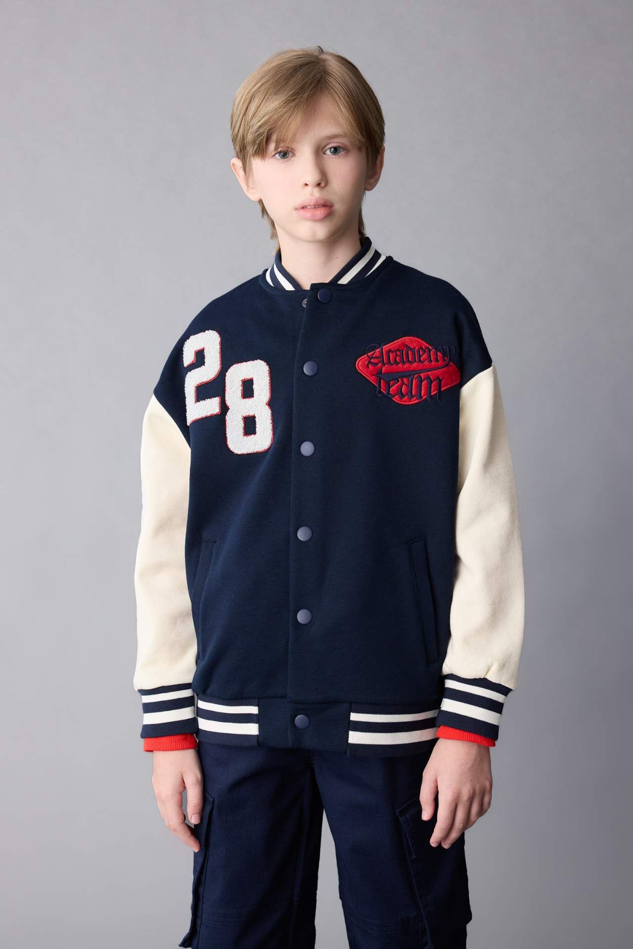 Erkek Çocuk Kolej Yaka Bomber Hırka: Şıklığı ve rahatlığı bir arada sunan bu hırka, her tarza uyum sağlar. Kaliteli kumaşı ve şık tasarımıyla öne çıkar. Gardırobunuzun vazgeçilmezi olmaya aday! Pamuk 59%,Poliester 41%