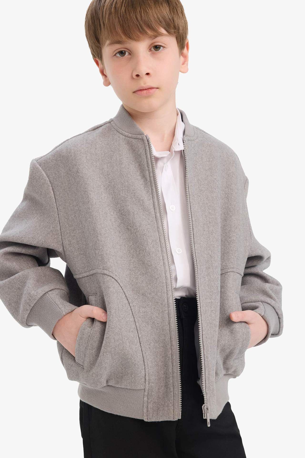 Erkek Çocuk Kolej Yaka Fermuarlı Bomber Mont