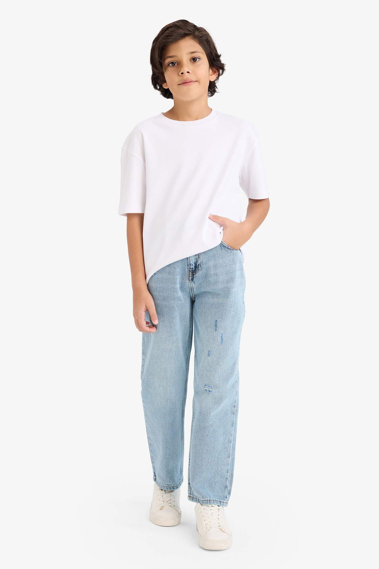 Erkek Çocuk Loose Fit Yırtık Detaylı Düz Paça Jean Pantolon