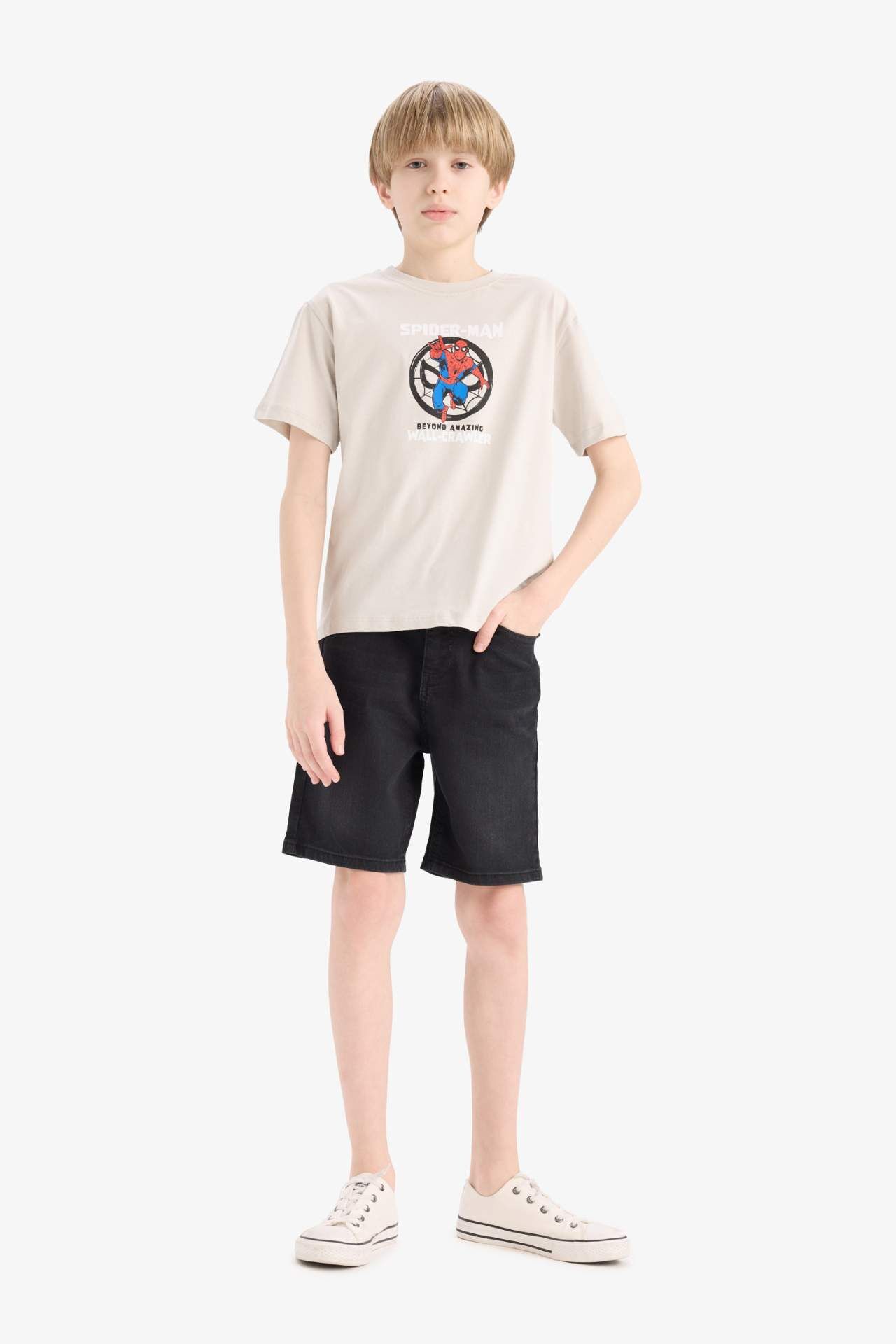 Erkek çocuklar için Marvel Spiderman bisiklet yaka kısa kollu tişört, küçük hayranlar için mükemmel bir tercih. Spiderman'in ikonik baskısı ve yumuşak kumaşı ile hem şık hem de rahat bir kullanım sunar, çocukların aktif günlerinde onlara hareket özgürlüğü sağlar. Pamuk 100%,Pamuk 100%,Pamuk 100%,Pamuk 100%,Pamuk 100%,Pamuk 100%,Pamuk 100%,Pamuk 100% Manken Bedeni: Göğüs: 0 Boy: 1,44 Basen: 0 Bel: 0
