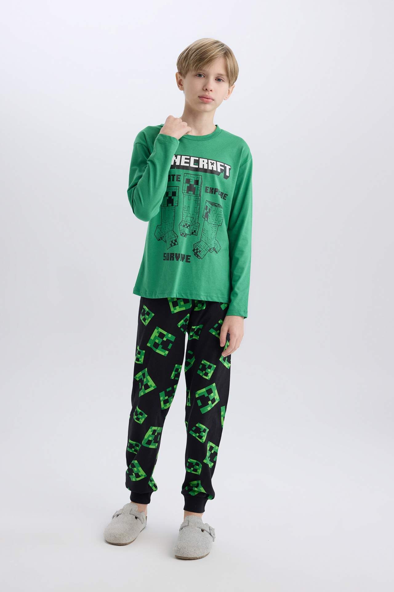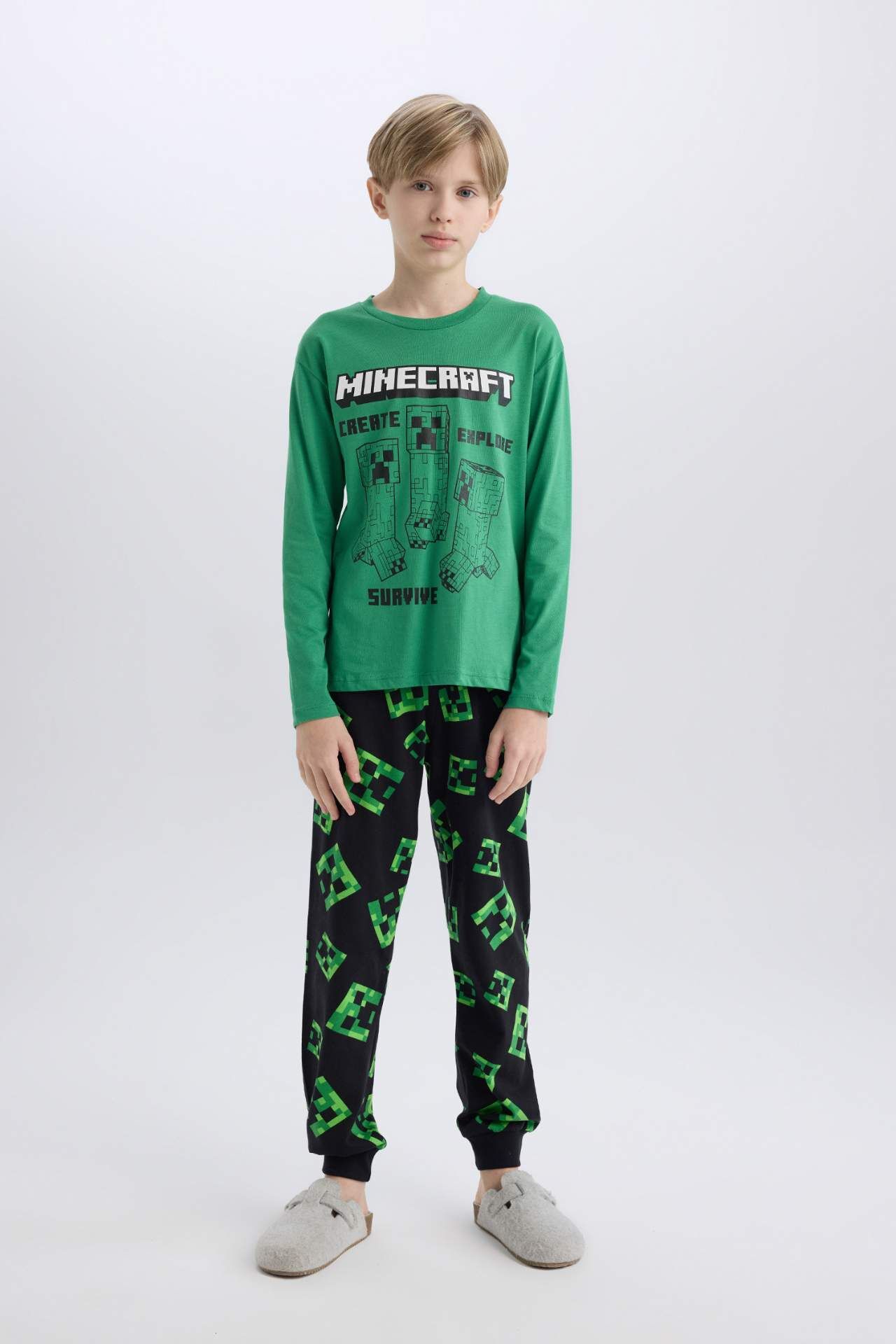 DeFacto Erkek Çocuk Minecraft Pijama Takımı Bisiklet Yaka Uzun Kollu Üst Beli Lastikli Uzun Alt D7817A825SPGN1038