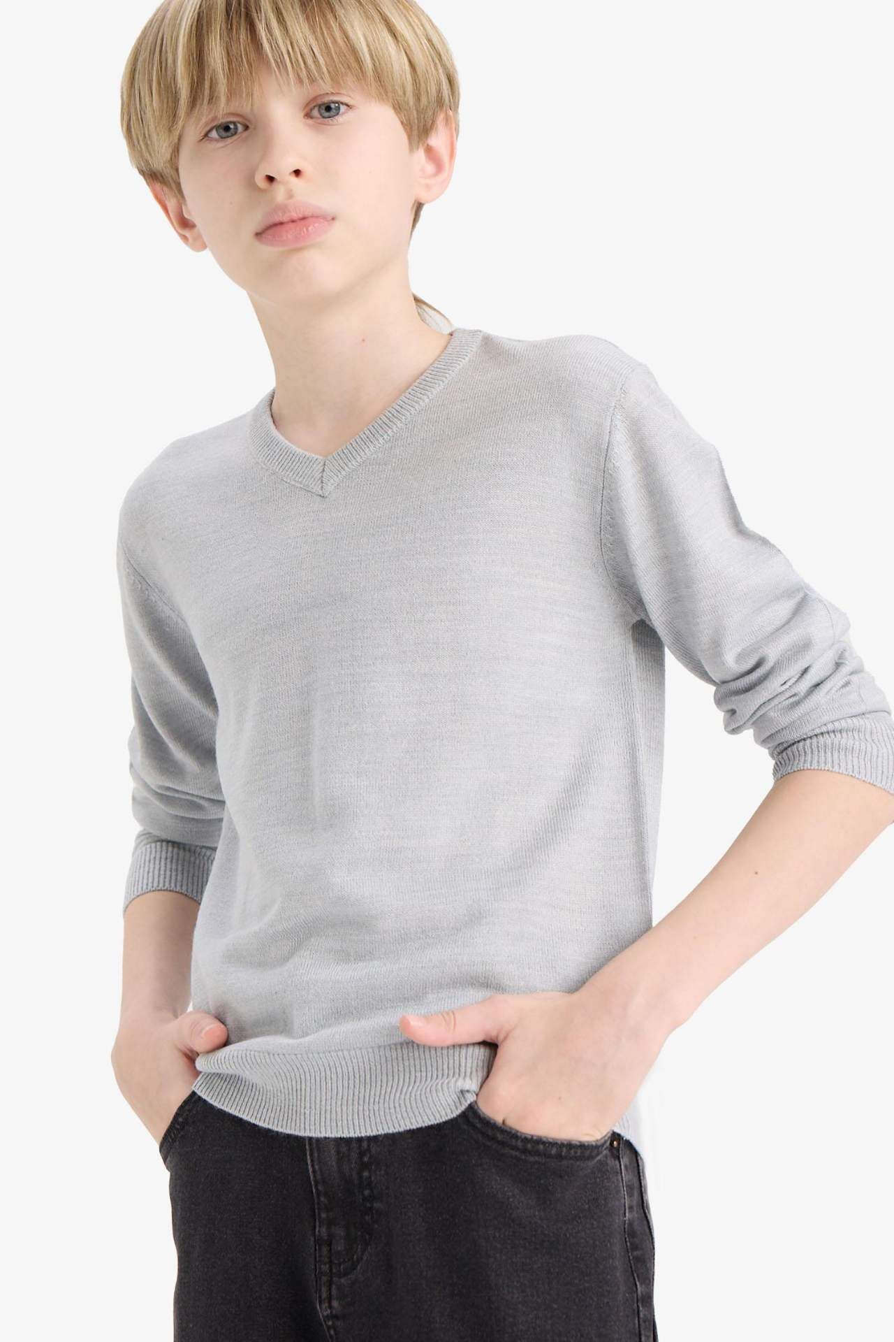DeFacto Erkek Çocuk Okul V Yaka Kazak F3733A825AUGR210