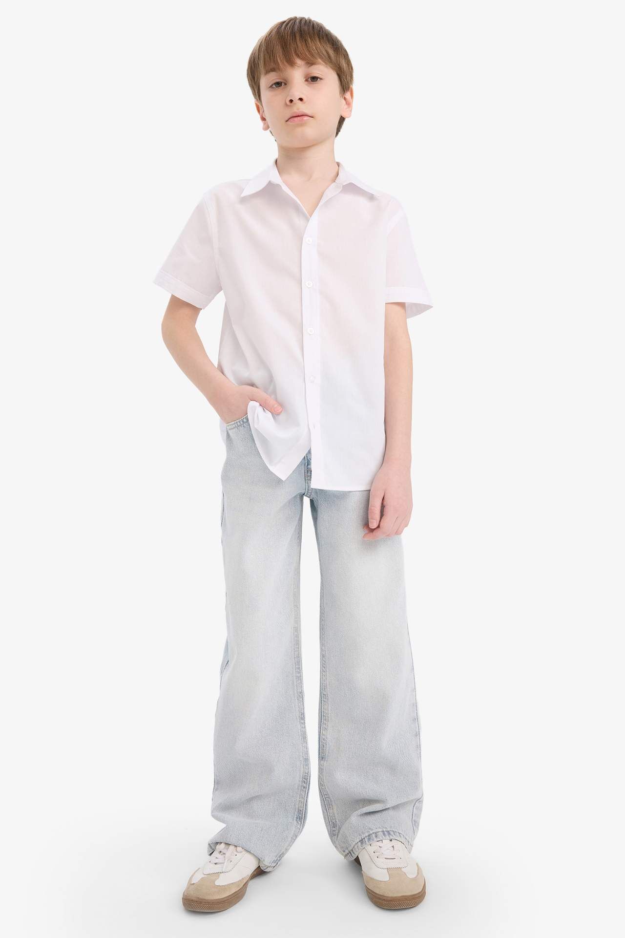 DeFacto Erkek Çocuk Okula Dönüş Regular Fit Polo Yaka Pamuklu Kısa Kollu Gömlek