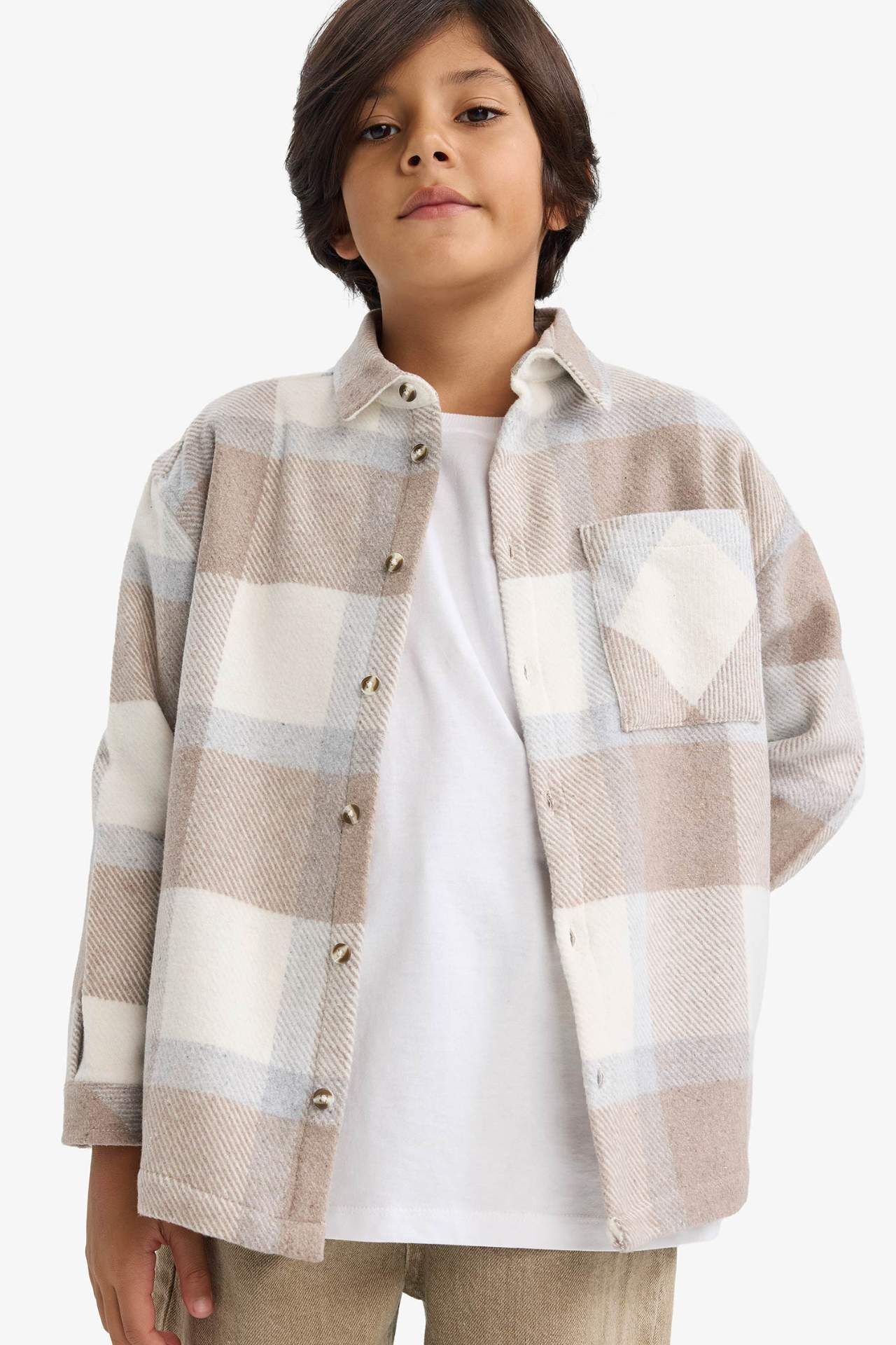 Erkek Çocuk Overshirt Fit Polo Yaka Ekose Desenli Flanel Uzun Kollu Gömlek