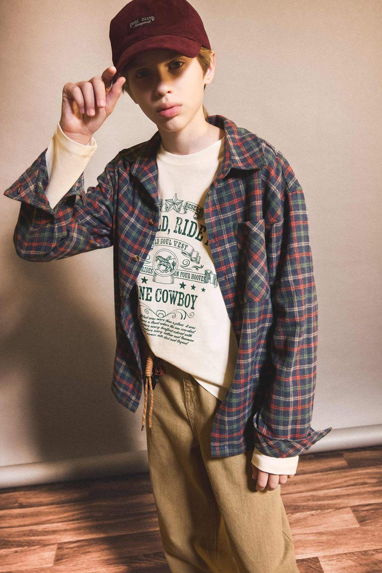 Erkek Çocuk Overshirt Fit Polo Yaka Kareli Flanel Uzun Kollu Gömlek G1967A825AUIN33