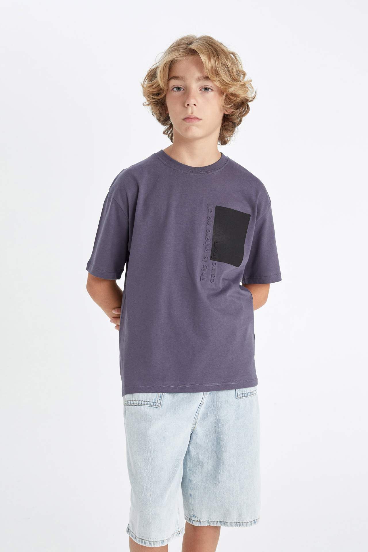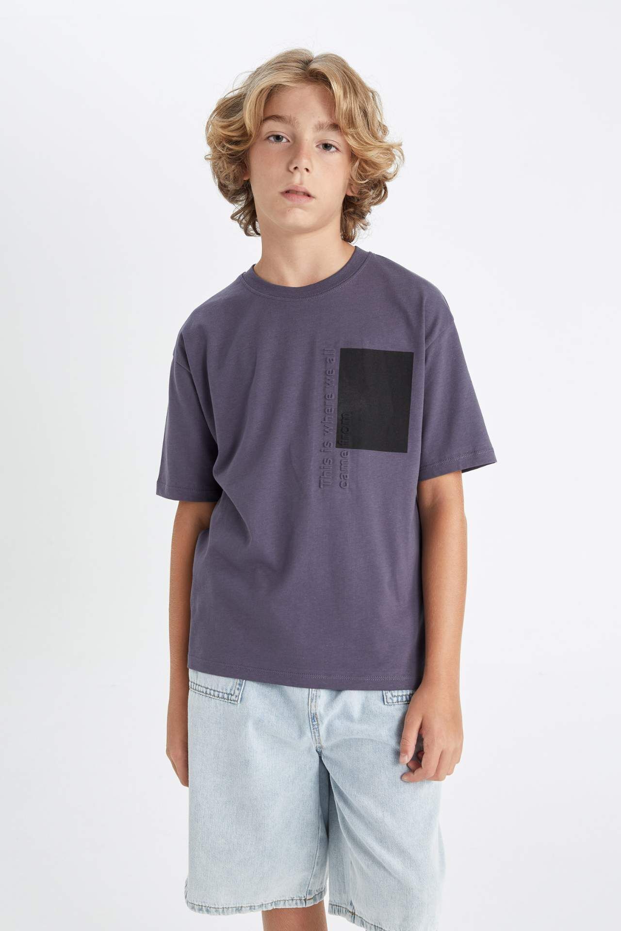 DeFactoFit Erkek Çocuk Oversize Fit Bisiklet Yaka Baskılı Kısa Kollu Tişört D0987A824AUIN254