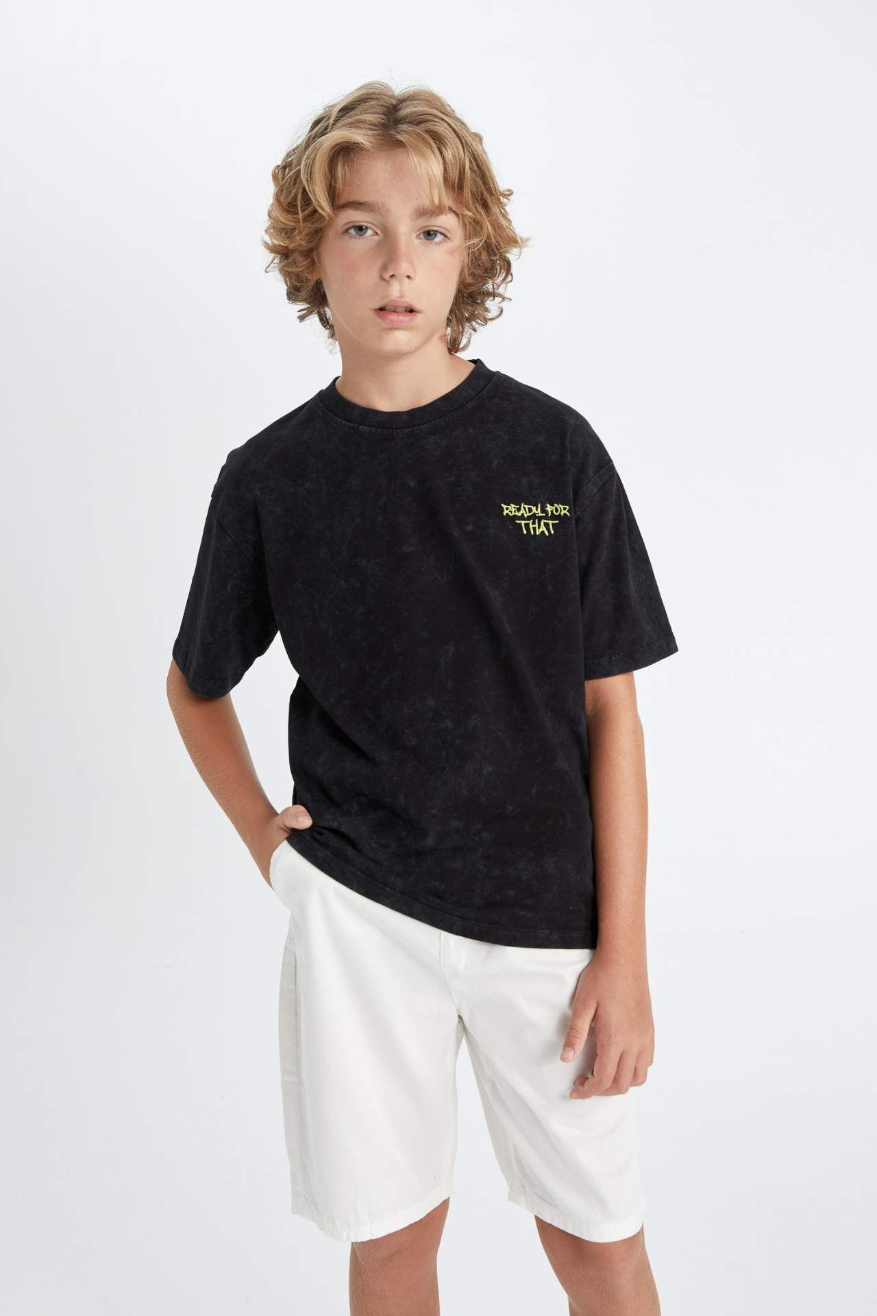 DeFactoFit Erkek Çocuk Oversize Fit Bisiklet Yaka Yıkamalı Kısa Kollu Tişört