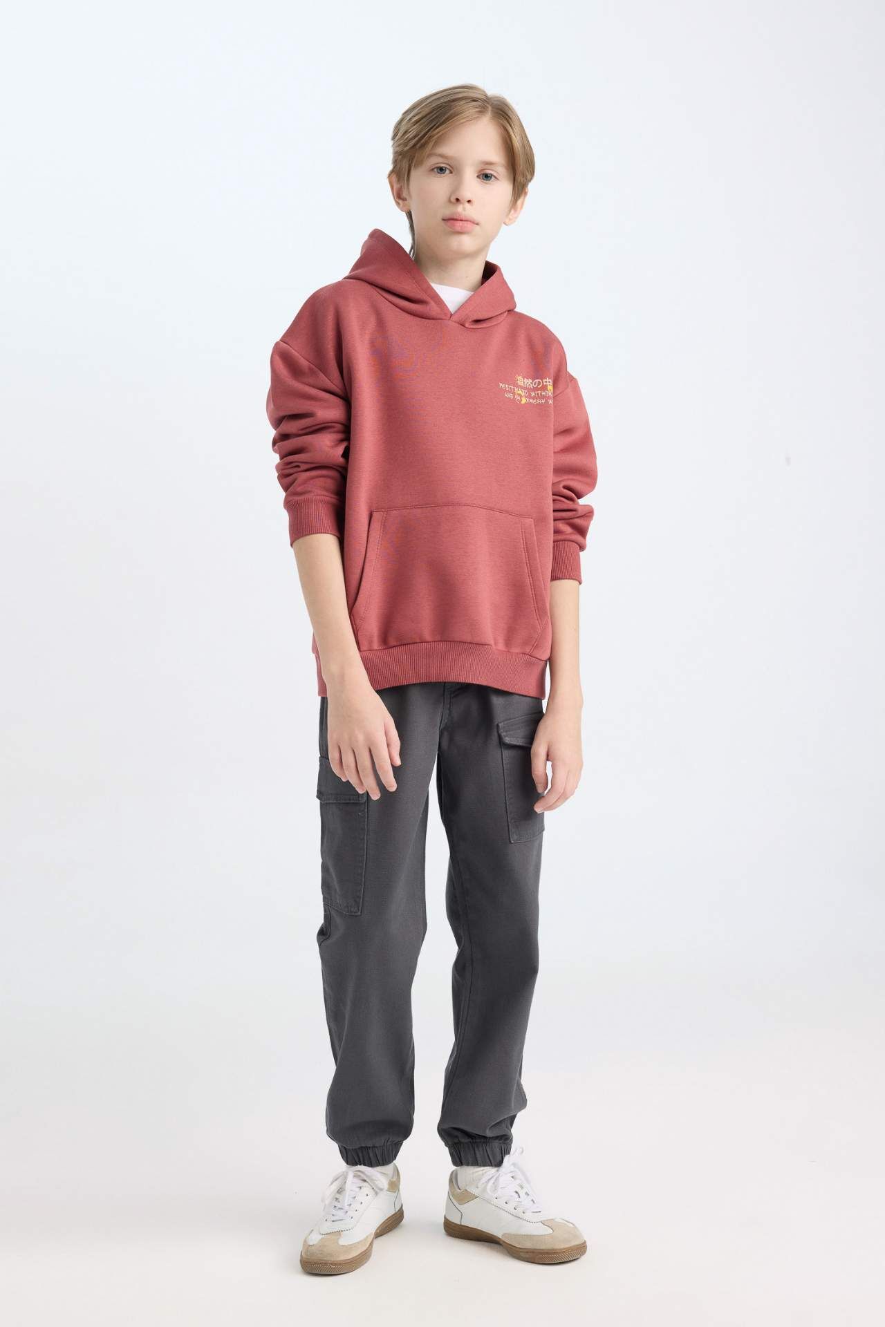 DeFacto Erkek Çocuk Oversize Fit Geniş Kalıp Sırt Baskılı Kapüşonlu Sweatshirt