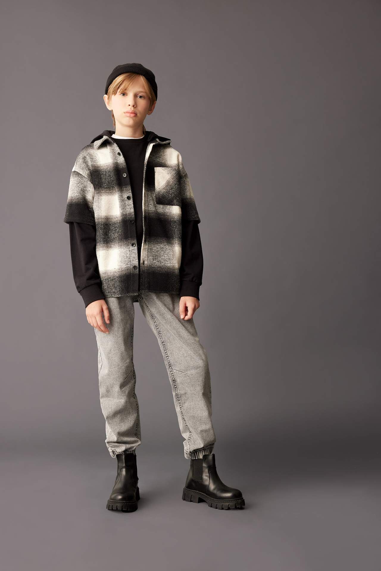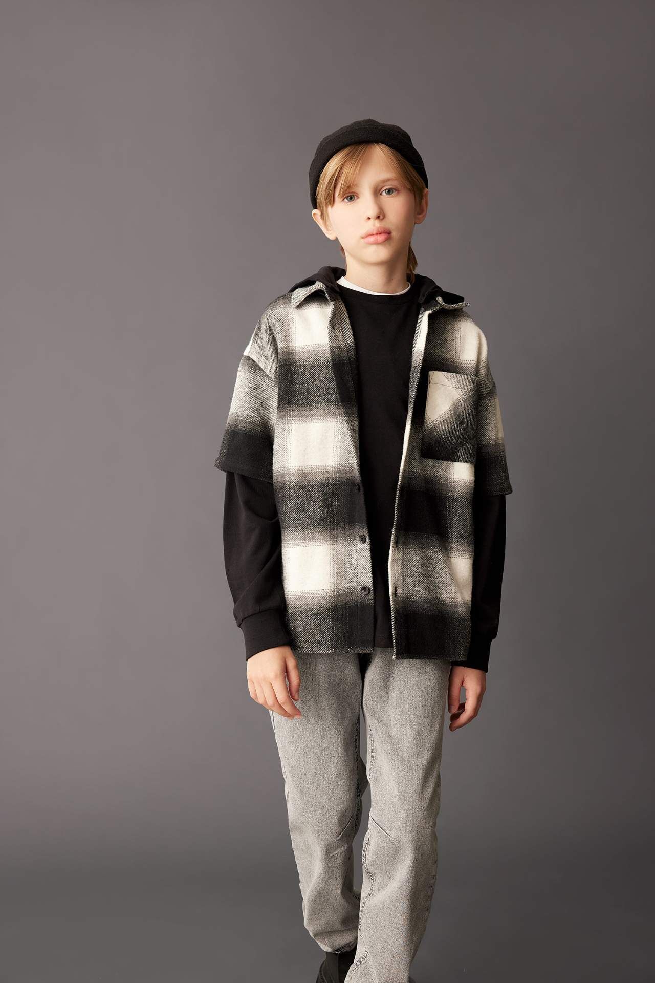 DeFacto Erkek Çocuk Oversize Fit Kapüşonlu Flanel Uzun Kollu Gömlek C7510A824WNAR213