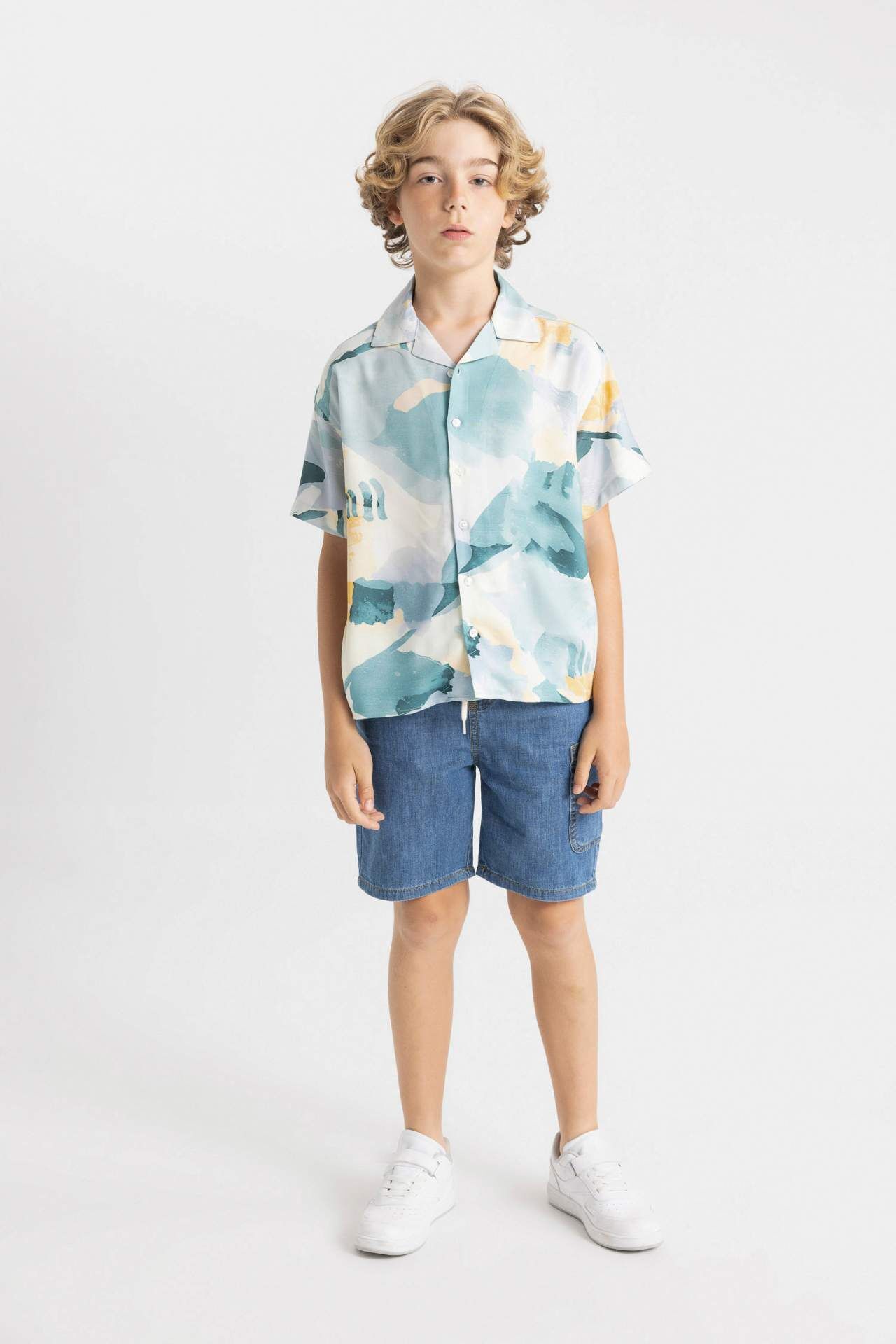 DeFactoFit Erkek Çocuk Oversize Fit Polo Yaka Viskon Kısa Kollu Gömlek D1522A824HSGN1226