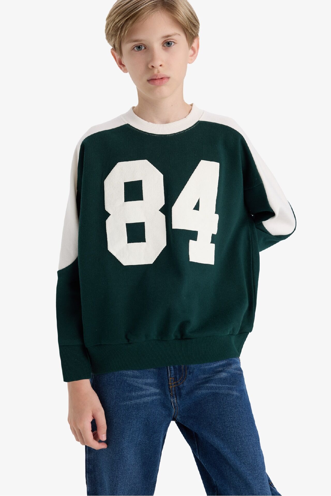 DeFacto Erkek Çocuk Oversize Geniş Kalıp Bisiklet Yaka Baskılı Okul Sweatshirt