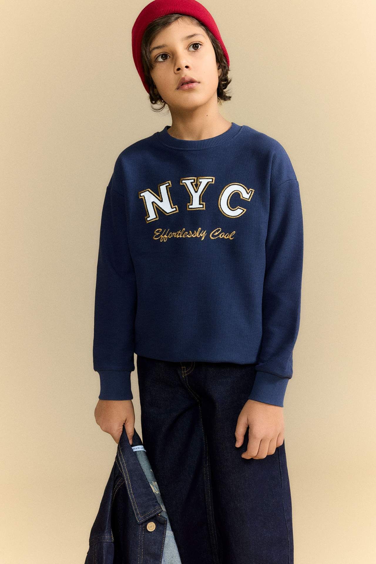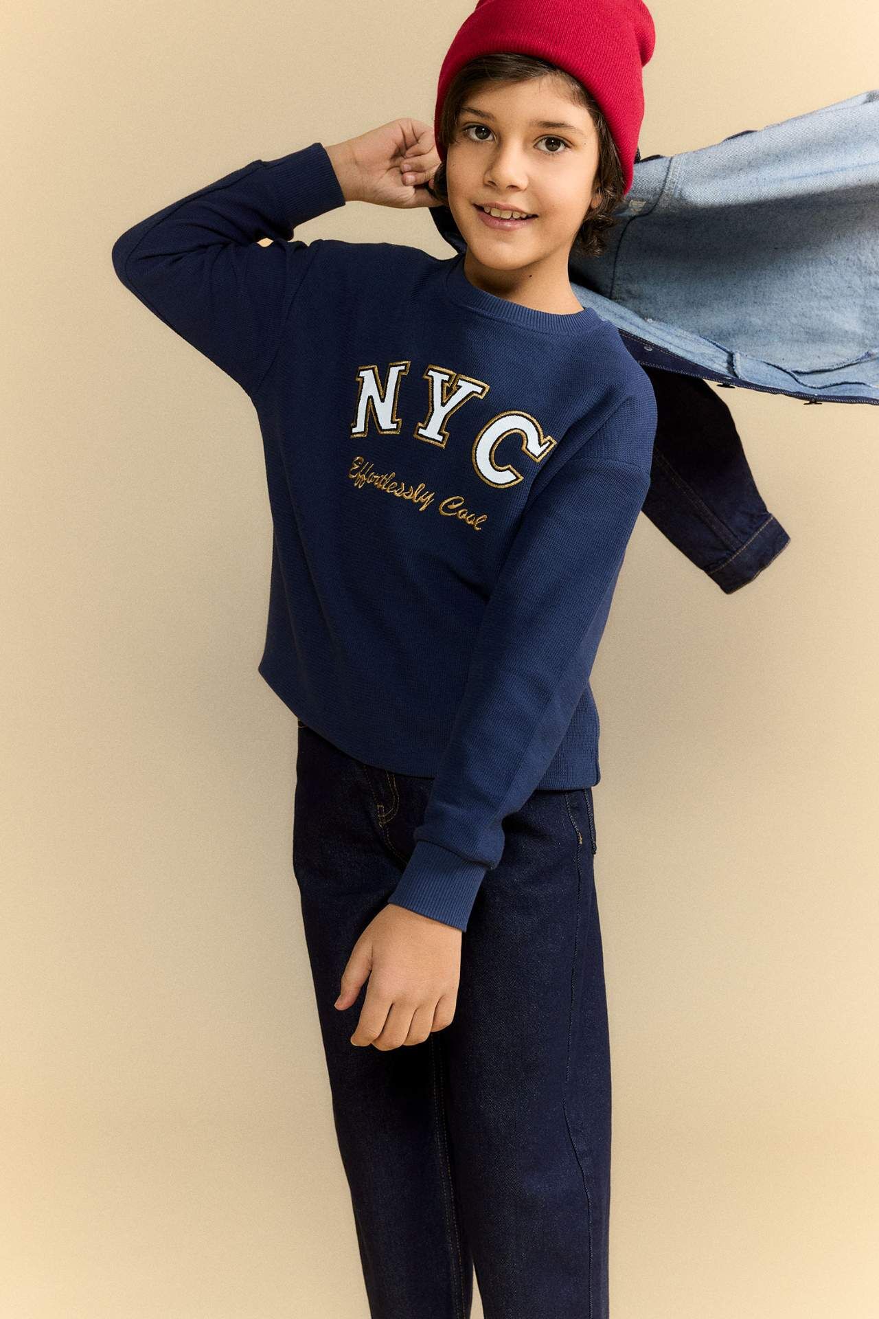 Erkek Çocuk Oversize Geniş Kalıp Bisiklet Yaka Baskılı Uzun Kollu Tişört