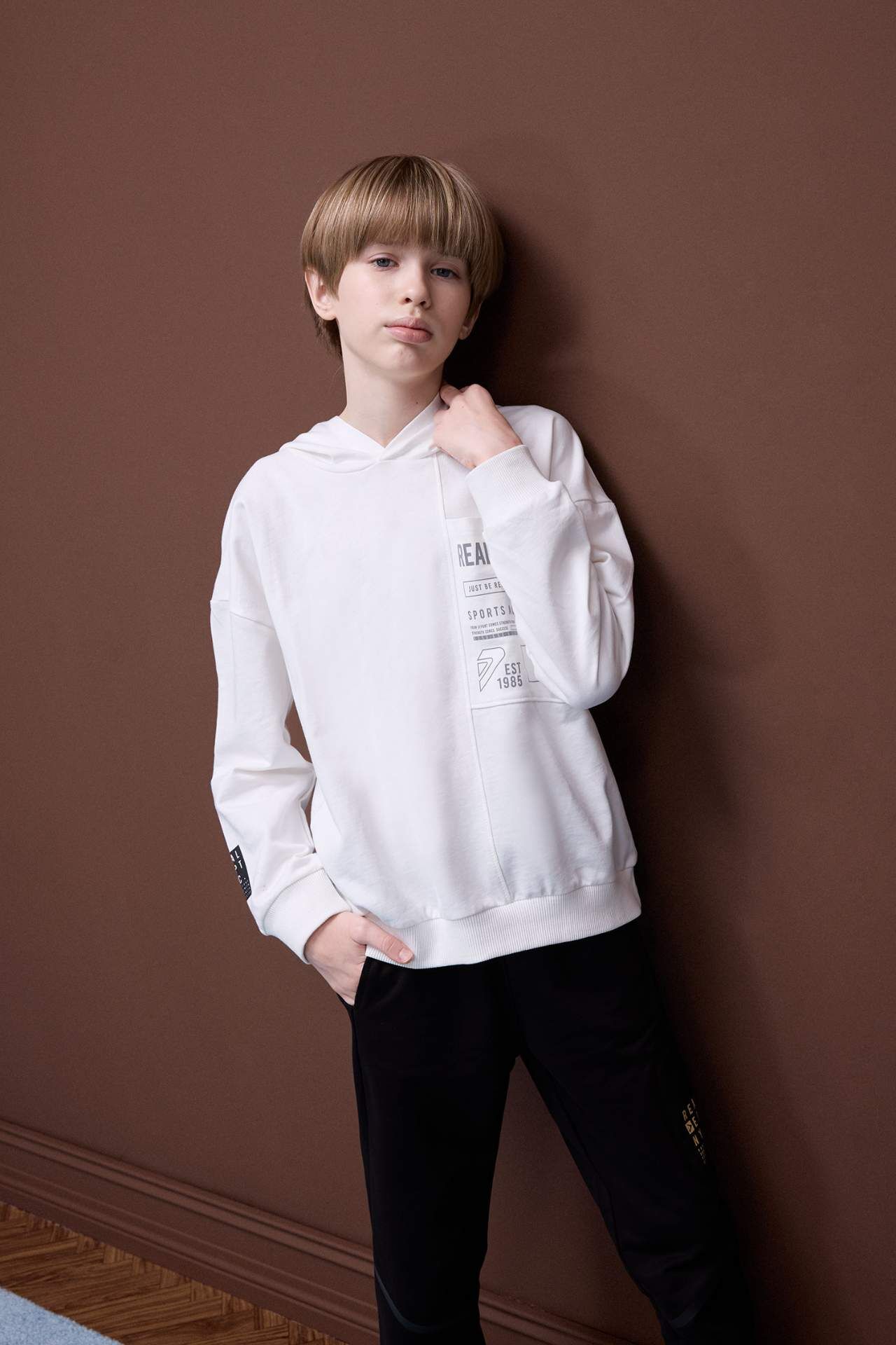 Çocuklar için özel olarak tasarlanmış, beyaz renkte oversize geniş kalıplı sweatshirt. Slogan desenli bu ürün, ilkbahar mevsimine uygun sweatshirt kumaşı ile maksimum konfor sağlar. Uzun kollu ve kapüşonlu tasarımıyla şıklığı ve rahatlığı bir arada sunar. Erkek çocuklar için ideal bir seçim. Pamuk 100%,Pamuk 100%,Pamuk 100%,Pamuk 100%,Pamuk 100%