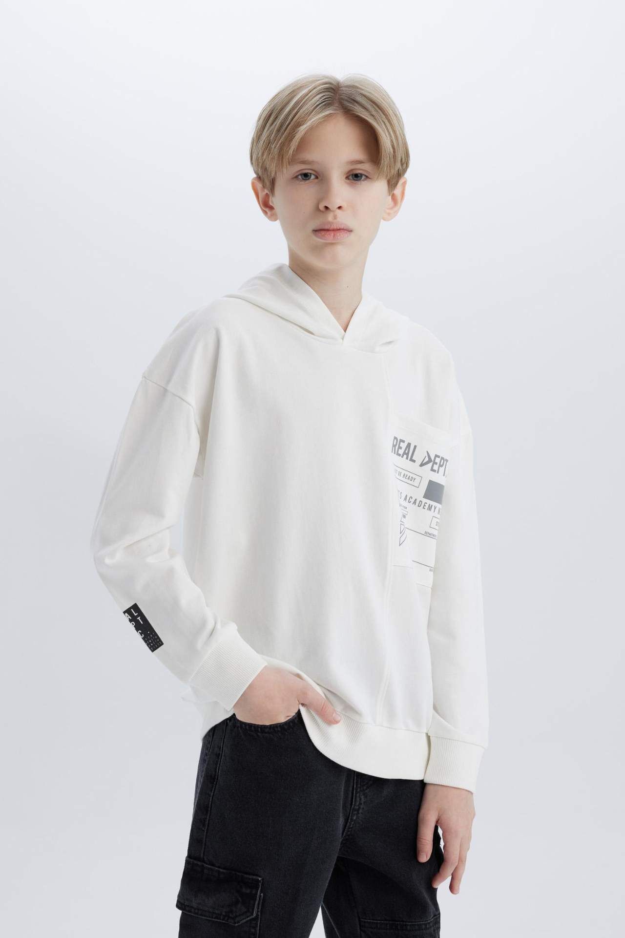 DeFacto Erkek Çocuk Oversize Geniş Kalıp Kapüşonlu Baskılı Sweatshirt D8535A825SPWT32