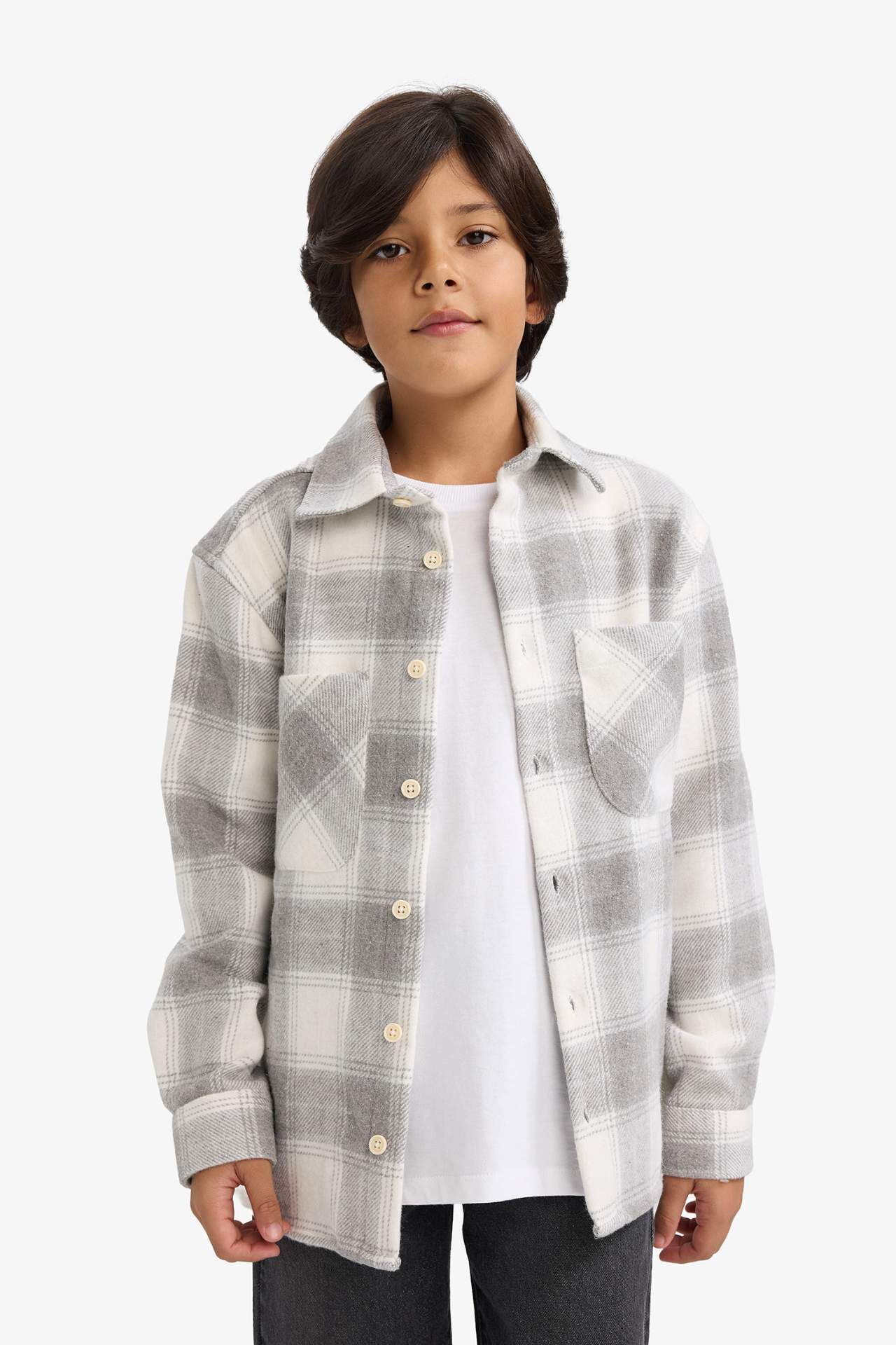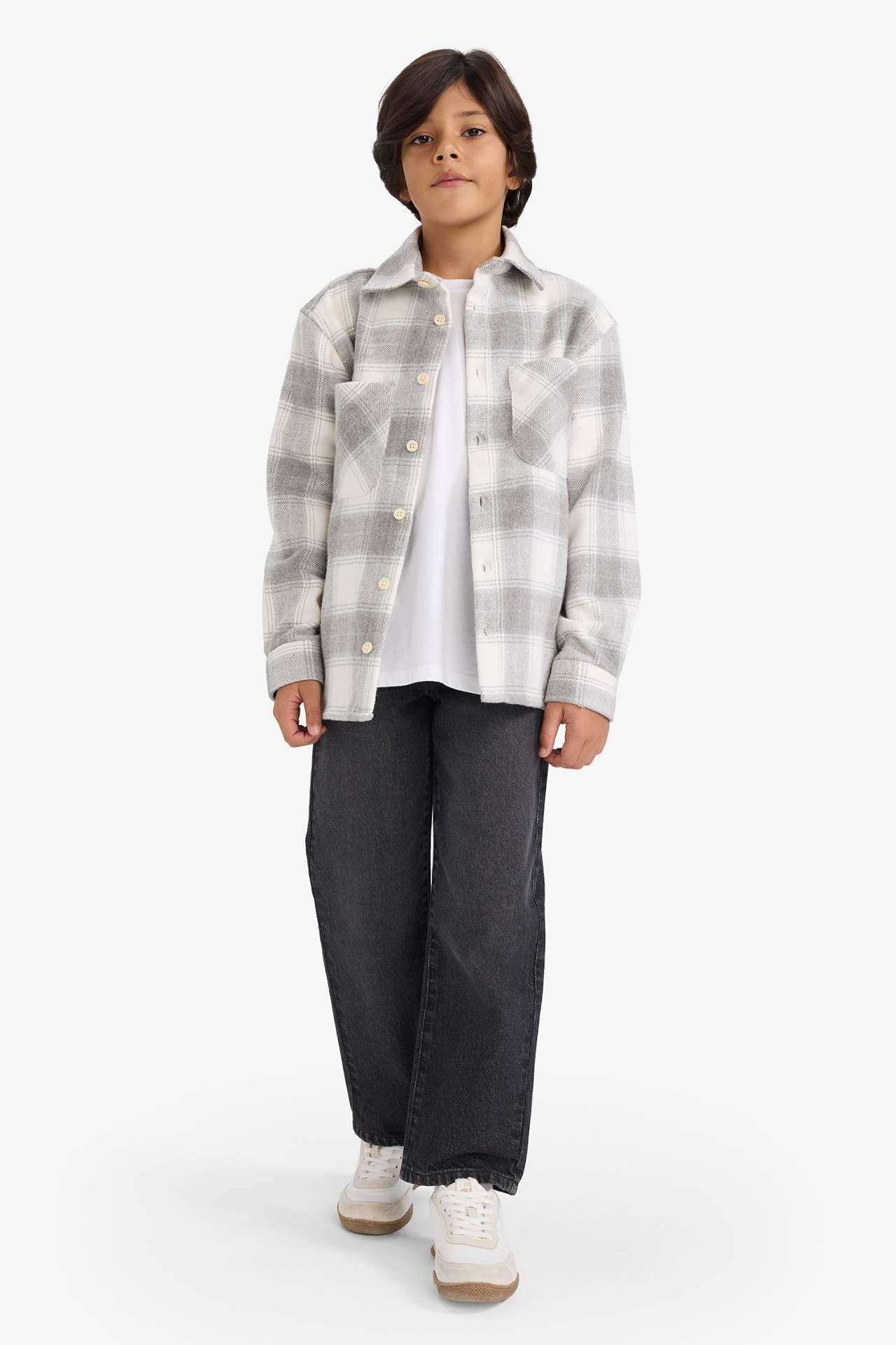 Erkek Çocuk Oversize Geniş Kalıp Polo Yaka Ekose Desenli Flanel Uzun Kollu Gömlek