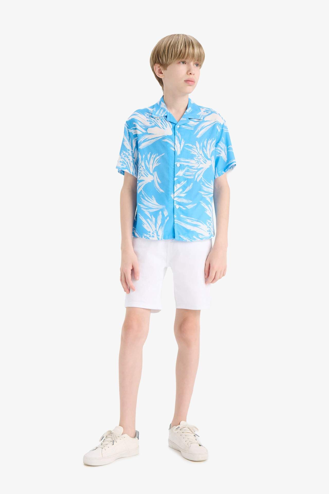 DeFacto Erkek Çocuk Oversize Geniş Kalıp Polo Yaka Floral Viskon Kısa Kollu Gömlek F5675A825HSBE339