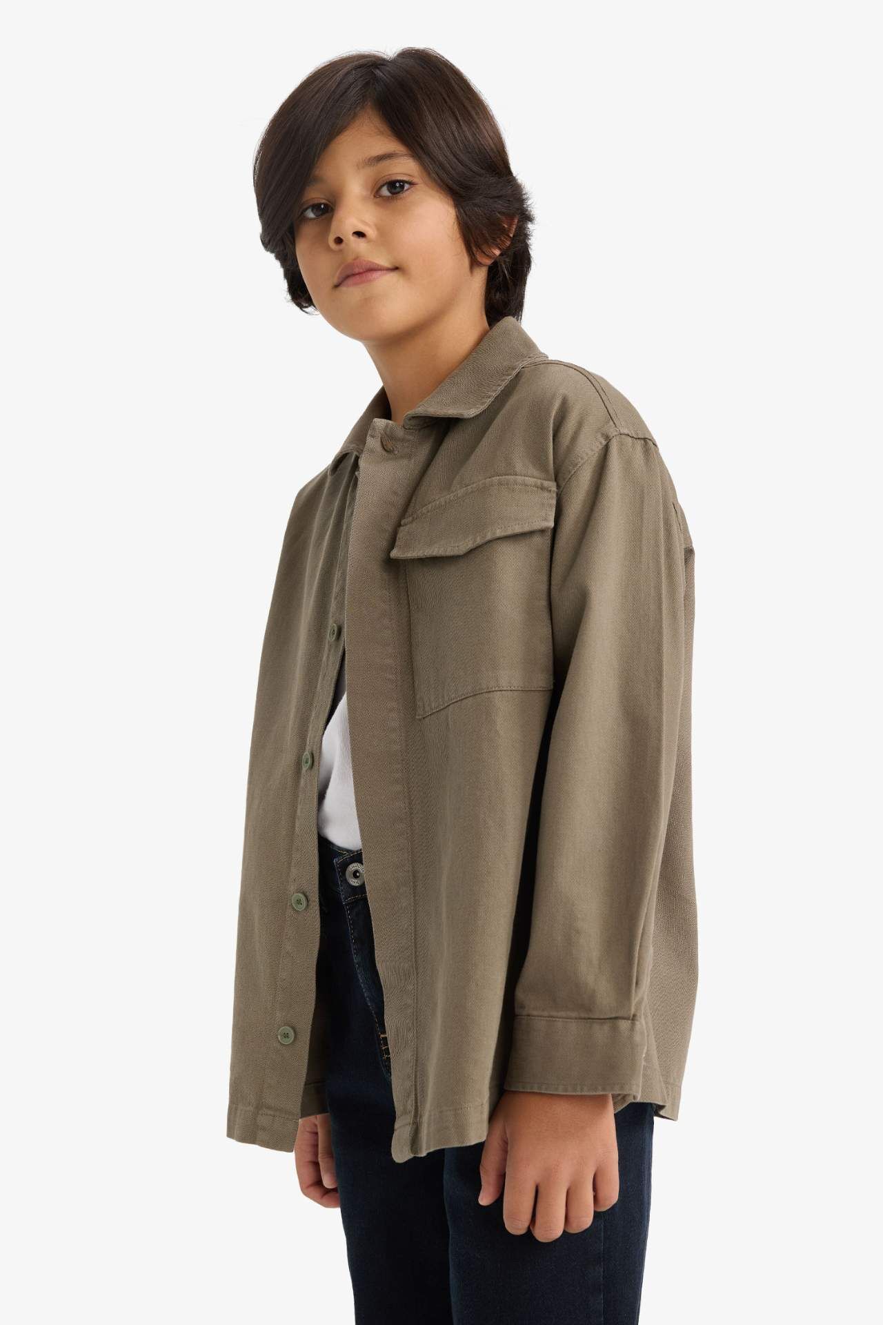 Erkek Çocuk Oversize Geniş Kalıp Polo Yaka Uzun Kollu Gömlek