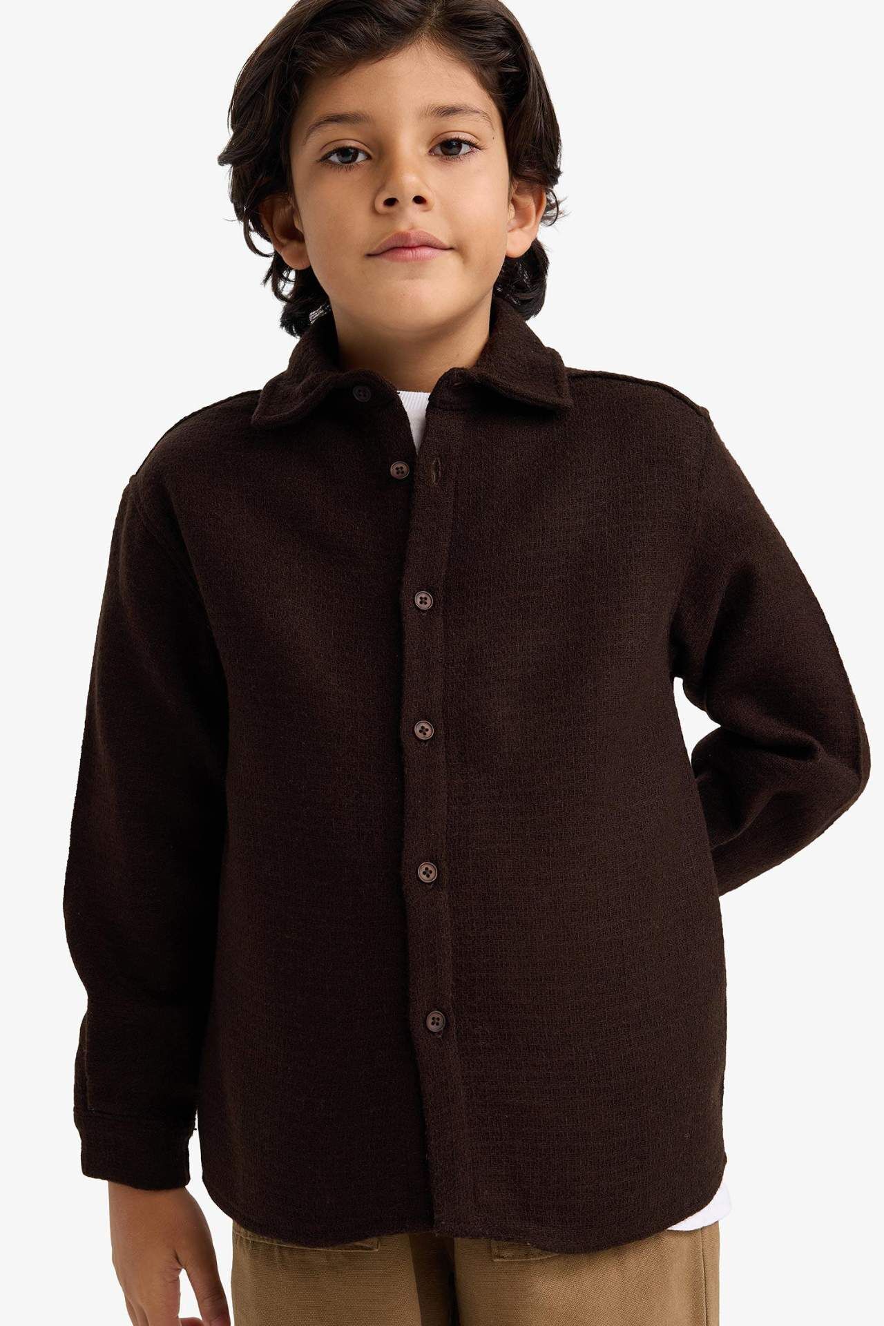 Erkek Çocuk Oversize Geniş Kalıp Polo Yaka Waffle Uzun Kollu Gömlek