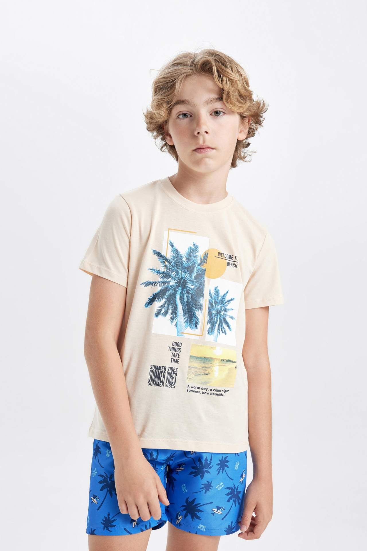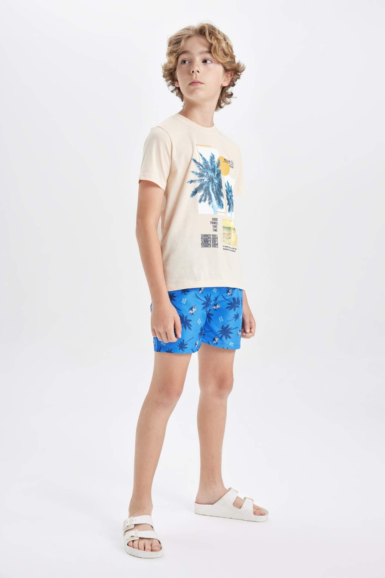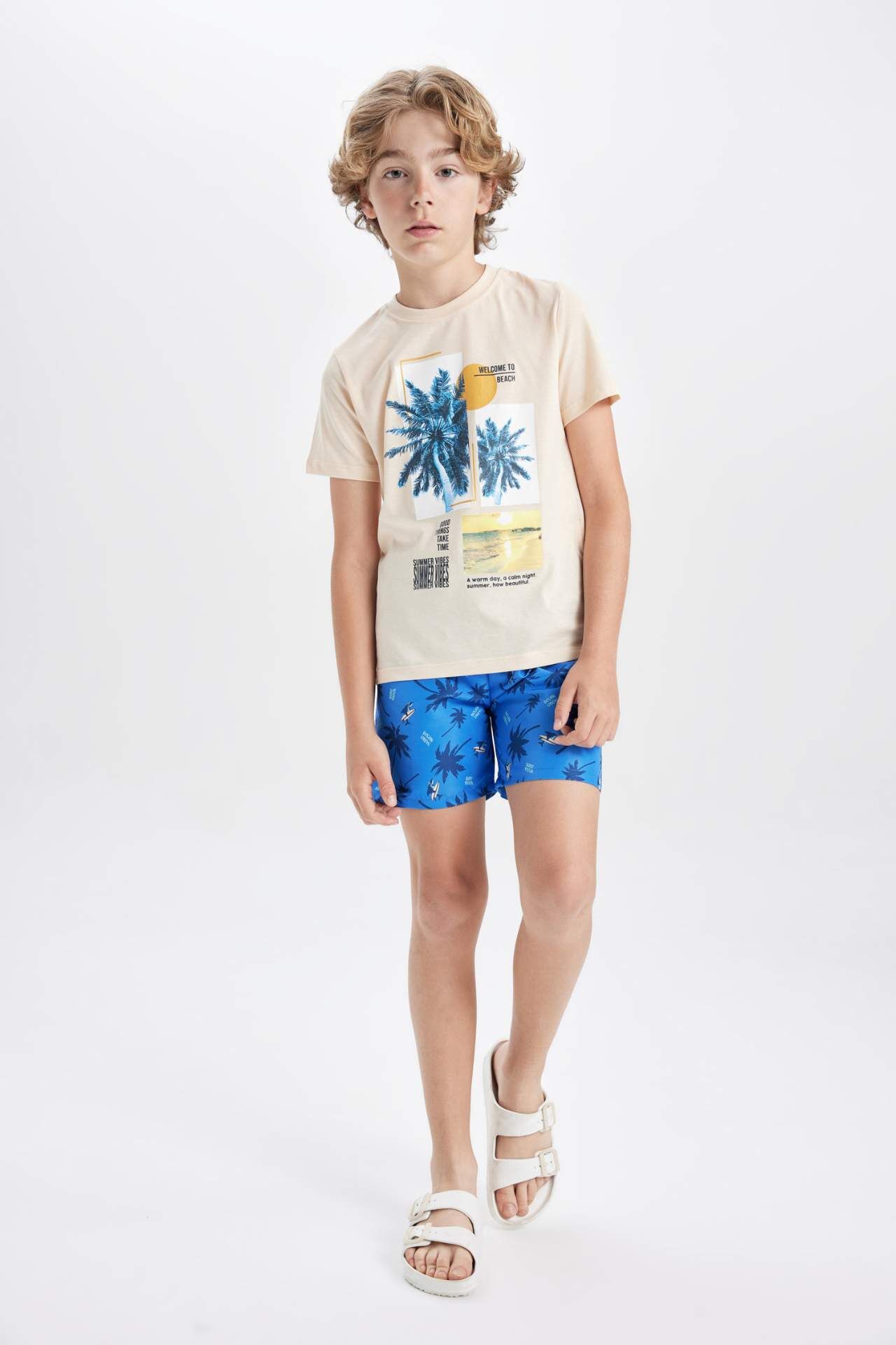 DeFacto DeFactoFit Erkek Çocuk Palmiye Desenli Kısa Kollu Tişört Deniz Şortu 2'li Takım C4553A824HSBG799