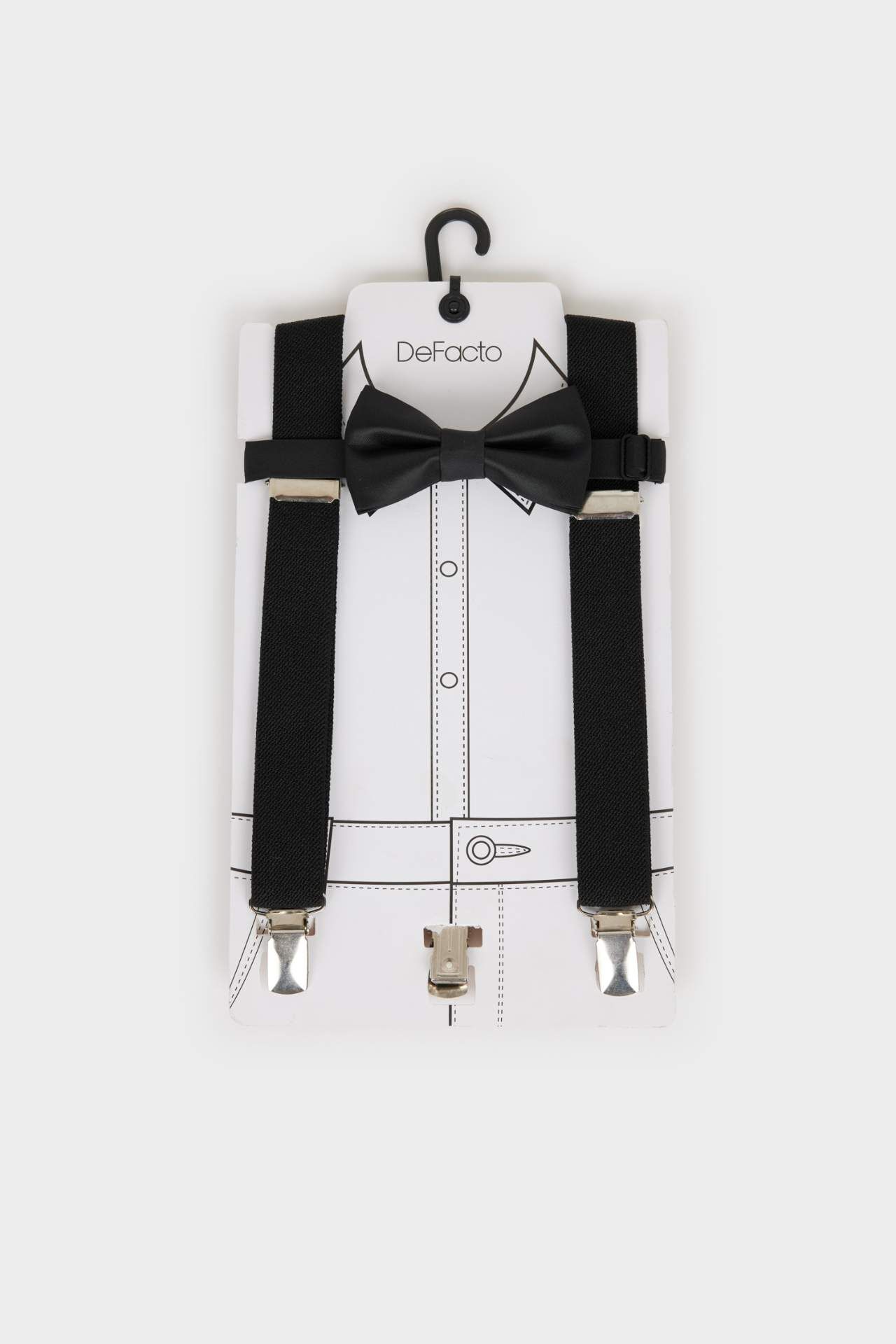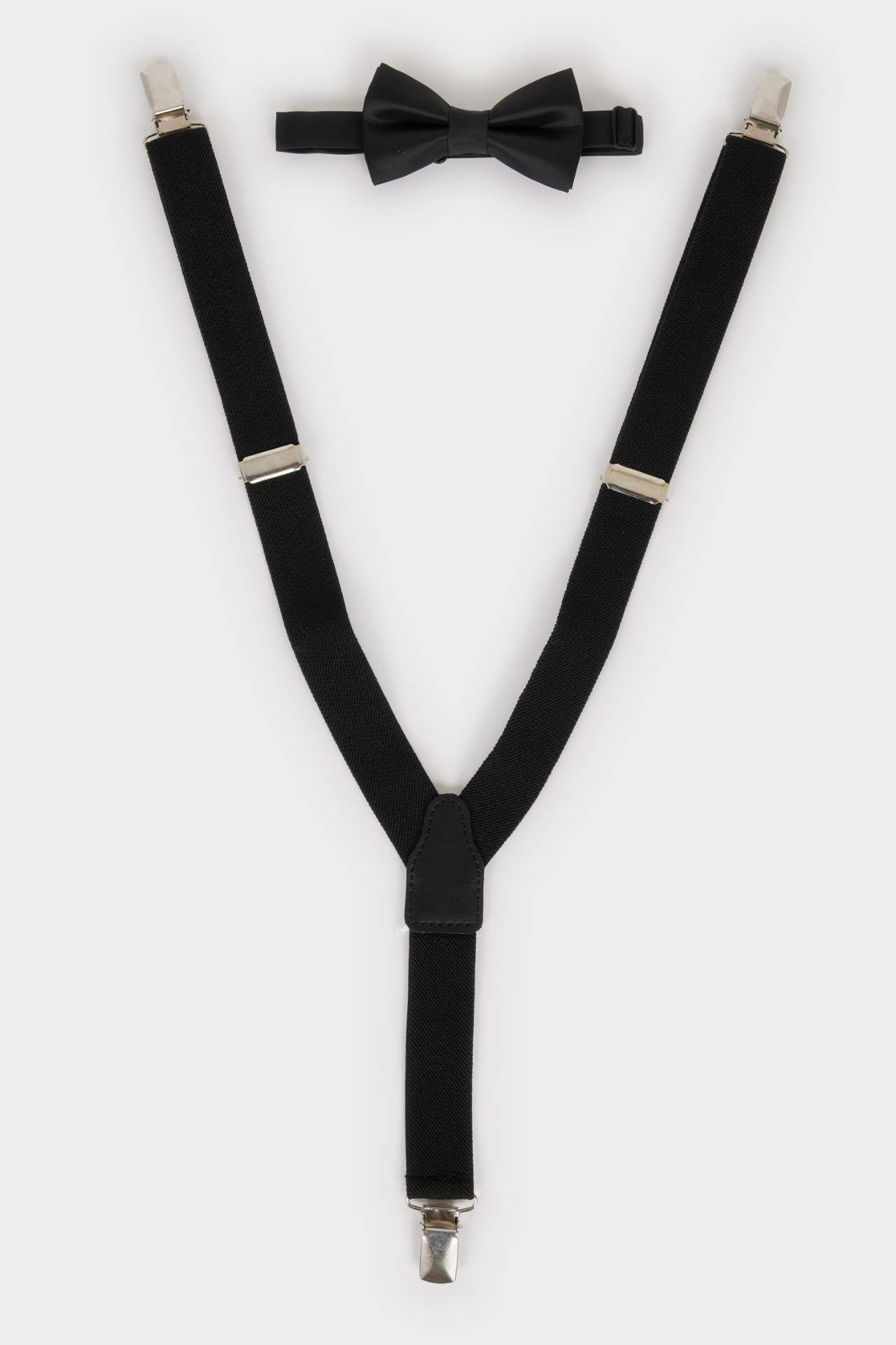 Erkek Çocuk Pamuklu 2'li Takım, şık pantolon askısı ve papyon detayıyla özel günler için ideal bir tercihtir. Pamuklu yapısıyla miniklere gün boyu konfor ve şıklığı bir arada sunar. Poliester 76%,Elastodien 24%,Poliester 100%