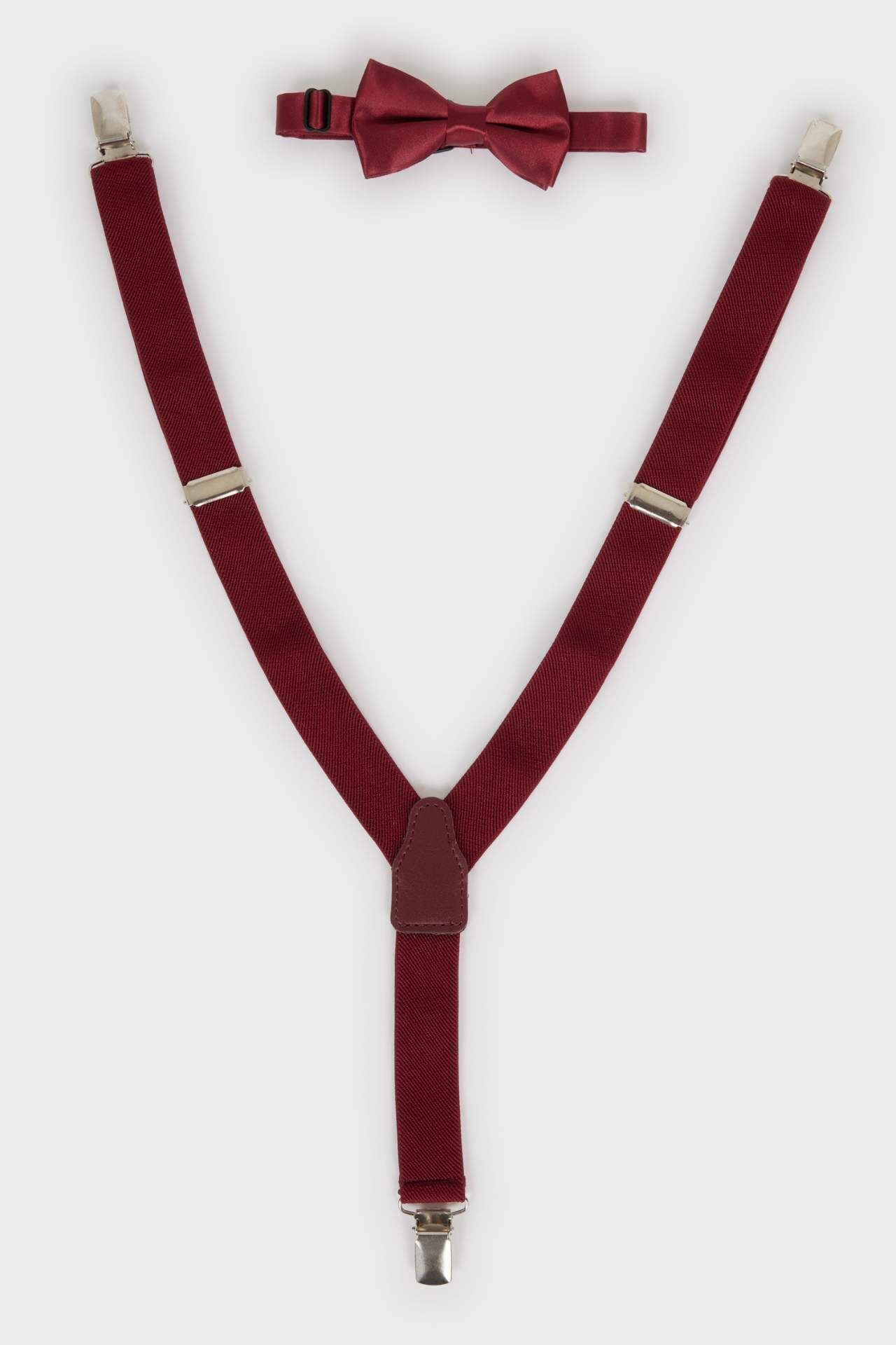 Erkek Çocuk Pamuklu 2'li Takım, şık pantolon askısı ve papyon detayıyla özel günler için ideal bir tercihtir. Pamuklu yapısıyla miniklere gün boyu konfor ve şıklığı bir arada sunar. Poliester 76%,Elastodien 24%,Poliester 100%