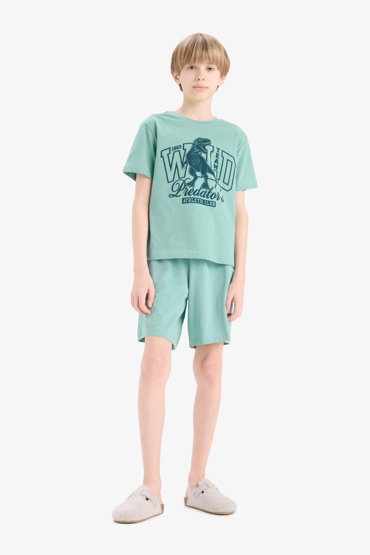 DeFacto Erkek Çocuk Pijama Takımı Baskılı Kısa Kollu Üst Beli Lastikli Şort E6649A825SMGN1095